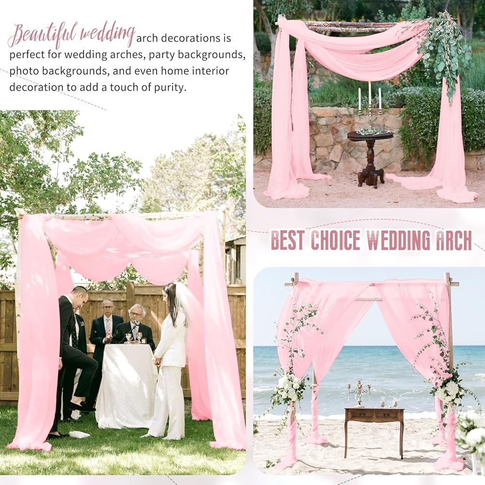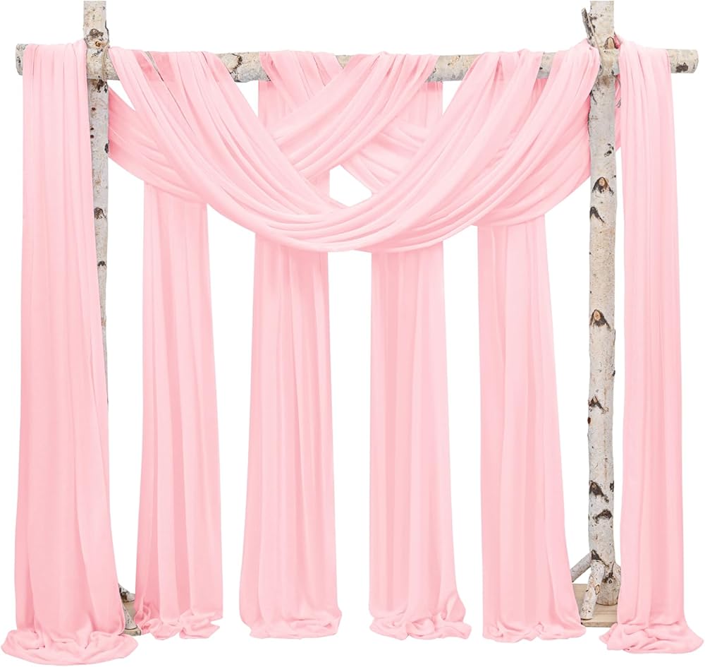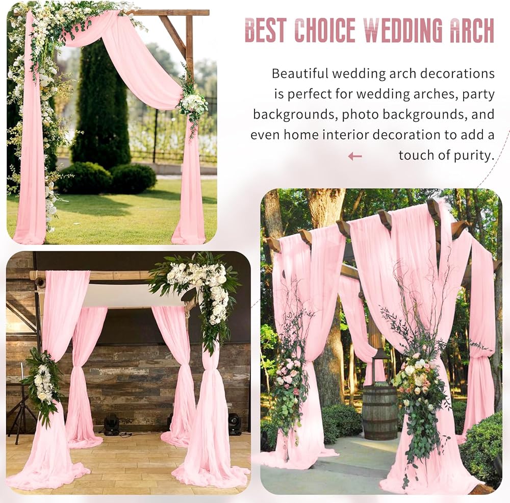 4 Panels Wedding Arch Draping Fabric,28" x 20Ft Pink Wedding Arch Drapes Fabric,Wedding Arch Decor,Pink Drapes for Backdrop Wedding Ceremony Party Ceiling Decor