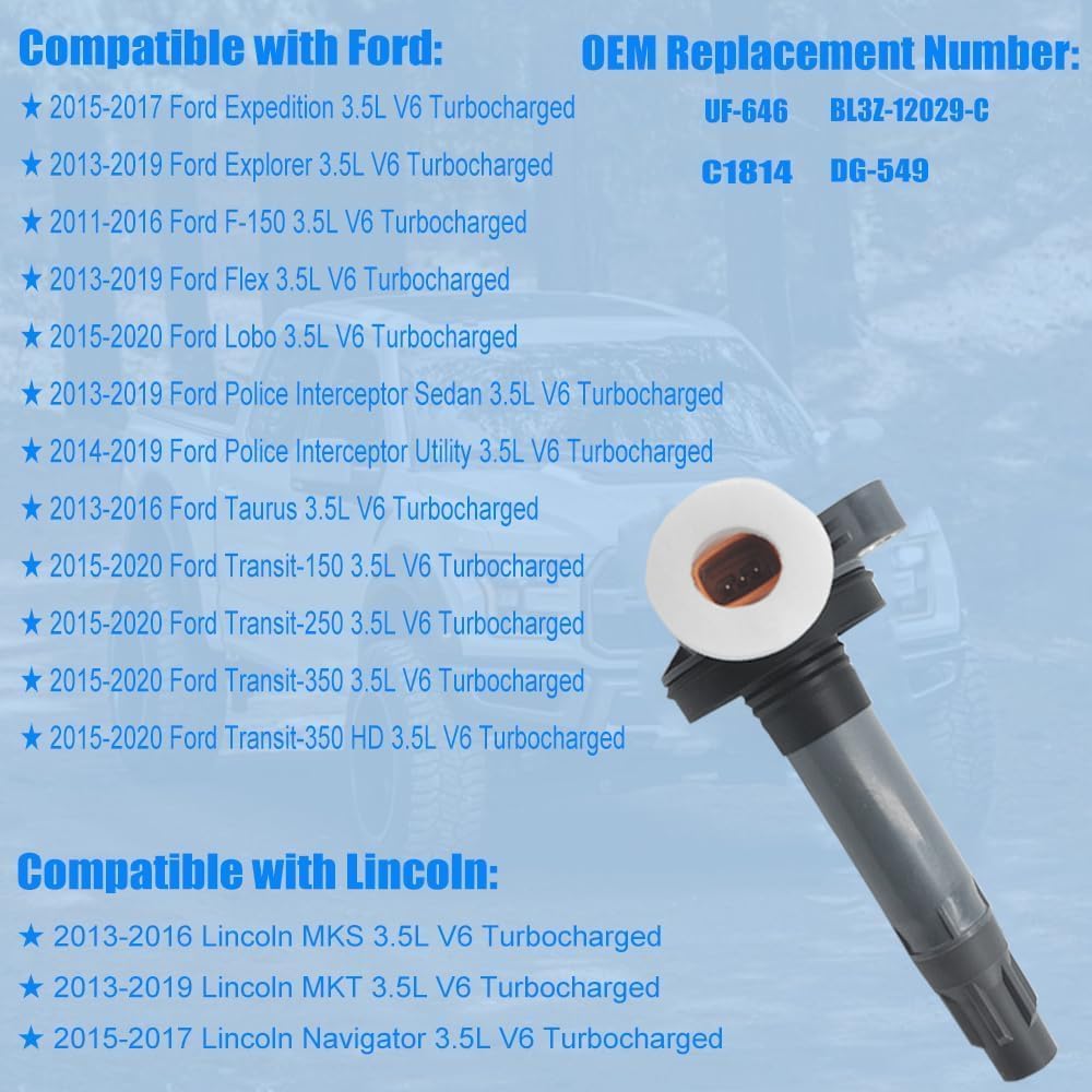 ملف الإشعال إيريديوم شمعات الإشعال مجموعة من 6 قطع UF646 متوافقة مع Ford F150 2011 2012 2013 2014 2015 2016 Expedition Explorer Flex Transit Ecoboost Lincoln MKS MKT Navigator 3.5L Turbo