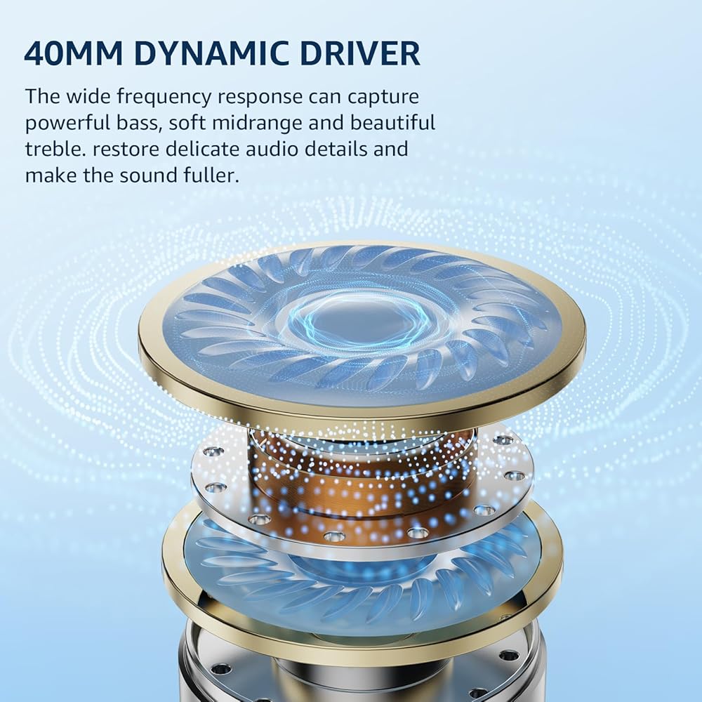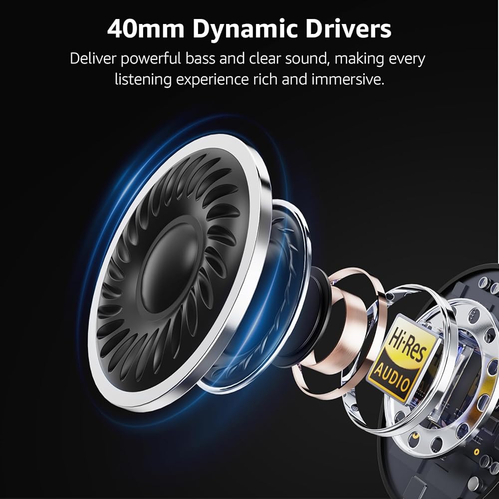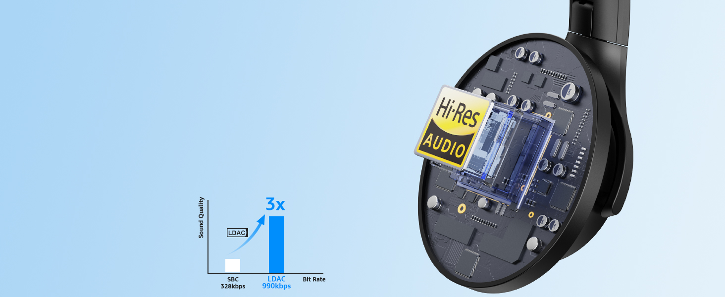 Hi-Res Audio with LDAC: The 40mm dynamic driver supports LDAC, achieving Hi-Res wireless audio, 1Mii Y8 bluetooth noise cancelling headphones providing transfer 3x more detail than other bluetooth headphones, achieving rich listening.