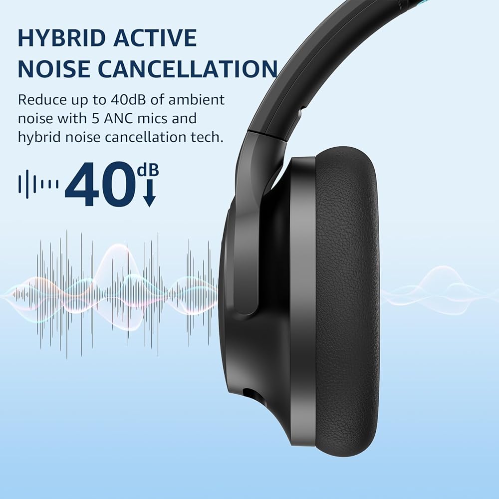 1Mii Y8 Hybrid Active Noise Cancelling Headphones, Wireless Over Ear Bluetooth Headphones, LDAC Hi-Res Audio, 75H Playtime, Deep Bass, Comfort Fit & Foldable Ear Cups, for Home Office Travel