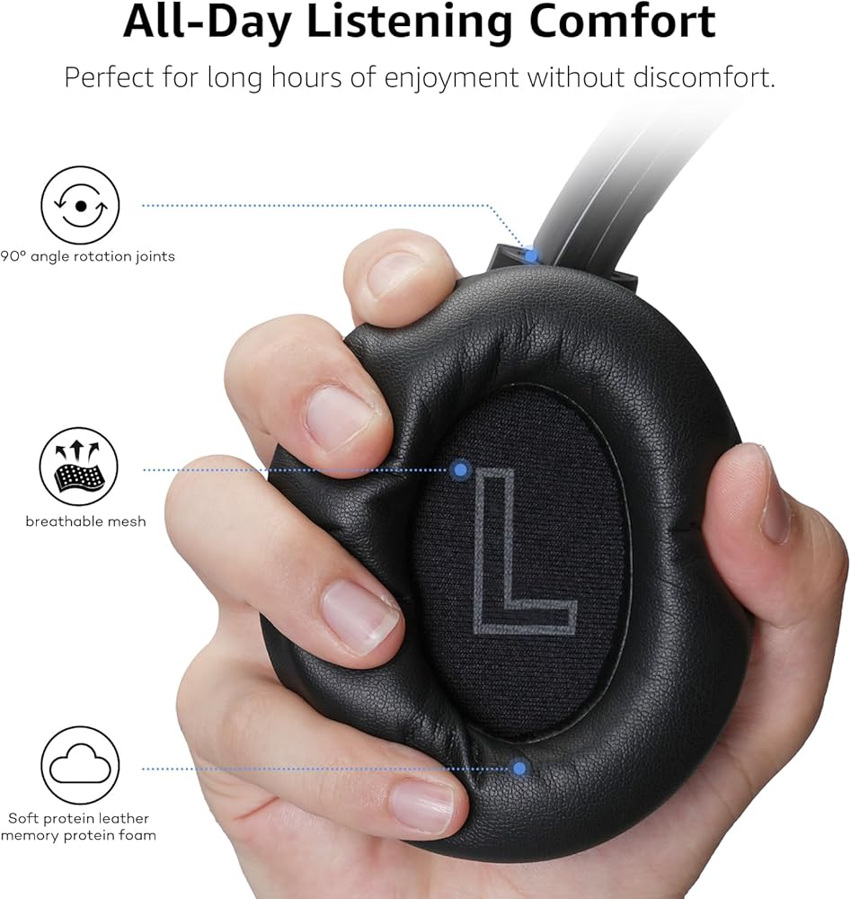 Stylish and Comfort Design: 1Mii over ear bluetooth headphones feature ultra-soft protein leather earmuffs and memory foam padding, retractable headband and 8° rotating earmuffs, easily fit any head contour, all-round soft design can evenly distribute pressure, no discomfort for long-term wear. And demovable earmuff design allows you to easily replace after long-term use.