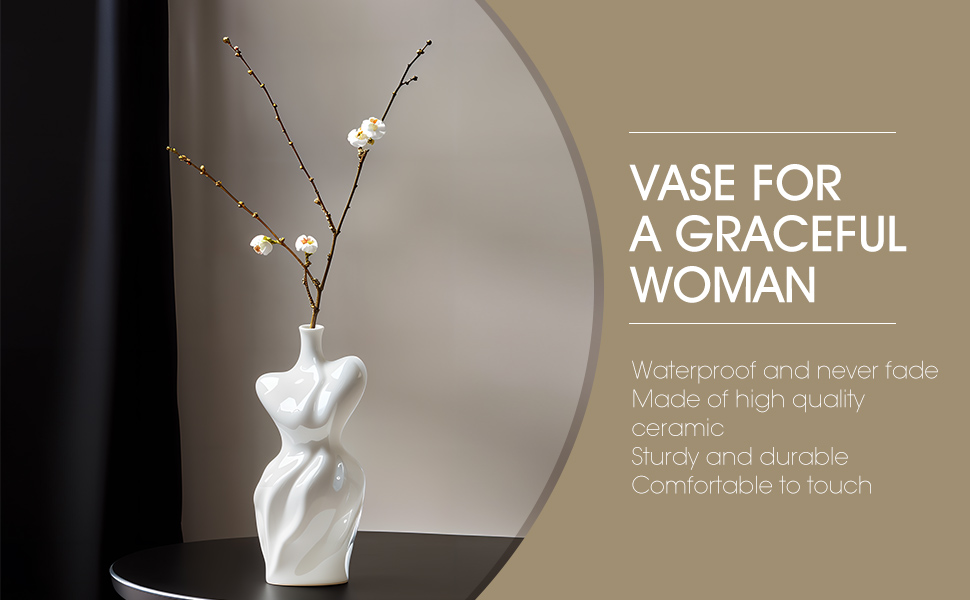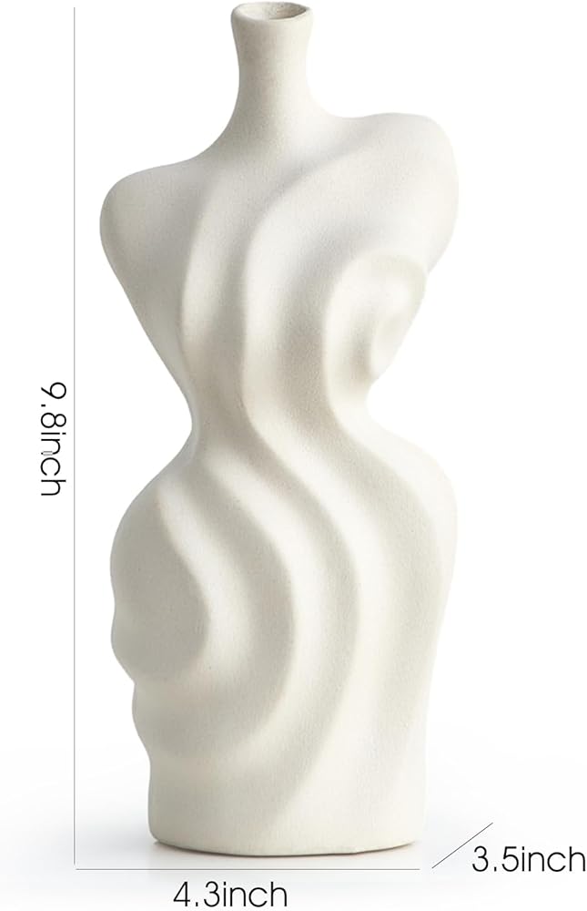 🌹 Size And High Quality Material: This human body vase measures 4.3 "L x 3.5 "W x 9.8 "H. It is made of high quality beaten ceramic, which is carefully fired by skilled craftsmen, with a flat cut mouth, smooth and rounded lines, and a polished base, which makes it very secure to place and won't damage the table. It can hold water and be used to insert flowers, the surface is smooth and easy to clean, durable.