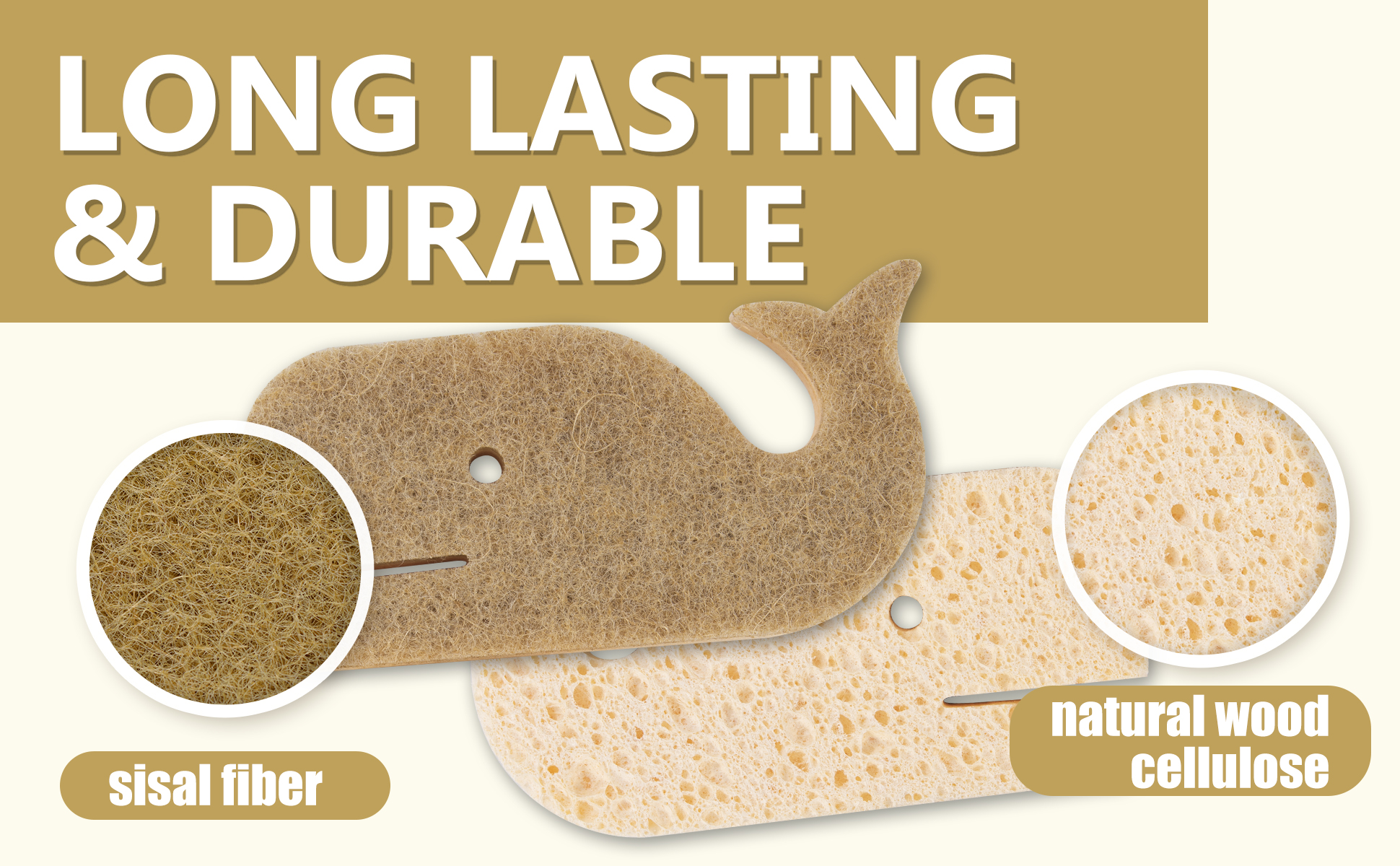 🌱إسفنجة نباتية طبيعية: إسفنجة الأطباق الطبيعية مصنوعة من ألياف جوز الهند النباتية ذات مصادر مستدامة والسليلوز الصديق للبيئة، والتي تتميز بأنها مقاومة للحرارة وعديمة الرائحة وقابلة للتحلل البيولوجي وآمنة للاستخدام في غسالة الأطباق. بالإضافة إلى ذلك، فإن إسفنجات غسل الأطباق للتنظيف متينة وقوية المرونة.