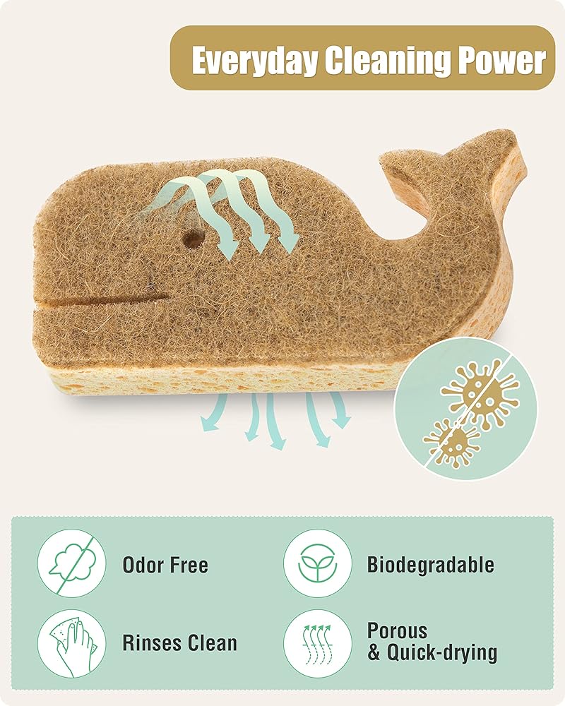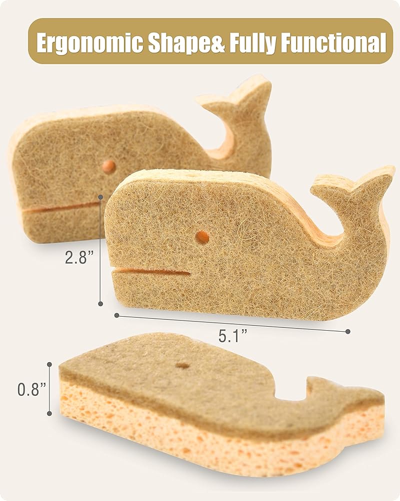 🌱تقشير فعال ومتين: تمسح الإسفنجات القابلة للتحلل البيولوجي على شكل الحوت الأوساخ والشحوم والأوساخ والشوائب الأخرى بسرعة وكفاءة لتوفير الوقت والجهد. ولكن لا تقلق، فمن السهل أن تتفكك وتدوم لفترة قصيرة. تُستخدم إسفنجات الأطباق الطبيعية ضغطًا 10 مرات وتكنولوجيا تصنيع معززة مصنوعة من مواد تنظيف أكثر إحكامًا، وتدوم لفترة أطول مقارنة بالإسفنجات التقليدية لتوفر لك استخدامًا موثوقًا وطويل الأمد.