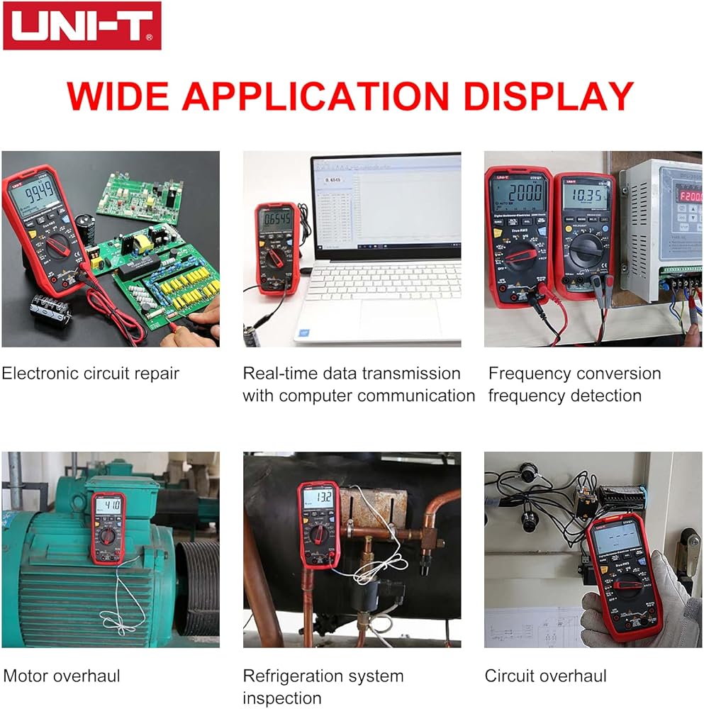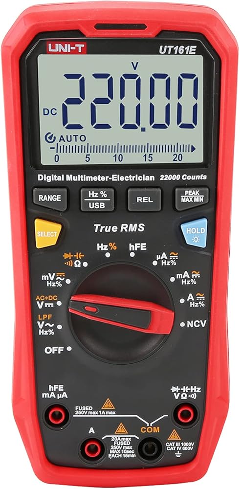 True RMS. accurately measures voltage and current in all conditions, including noisy environments affected by harmonics. Diagnose automotive, industrial and household electrical issue in a breeze. Data hold. Backlit. Max/Min. Relative mode.