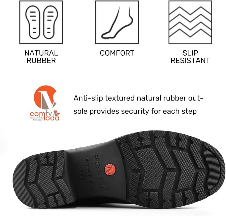 مصمم للاحتكاك: النعال الخارجية المتينة والمضادة للانزلاق مصنوعة من مطاط لدن بالحرارة مصمم لتوفير الثبات على الأسطح الزلقة. يمنح الاحتكاك الإضافي الأمان عند عبور المسارات الجليدية.