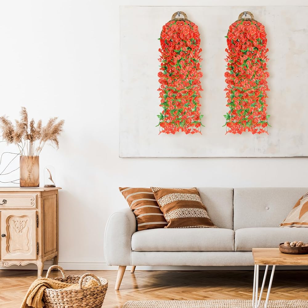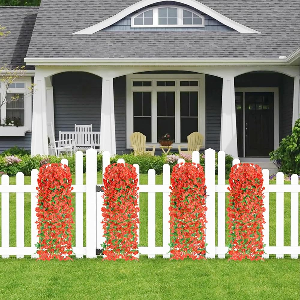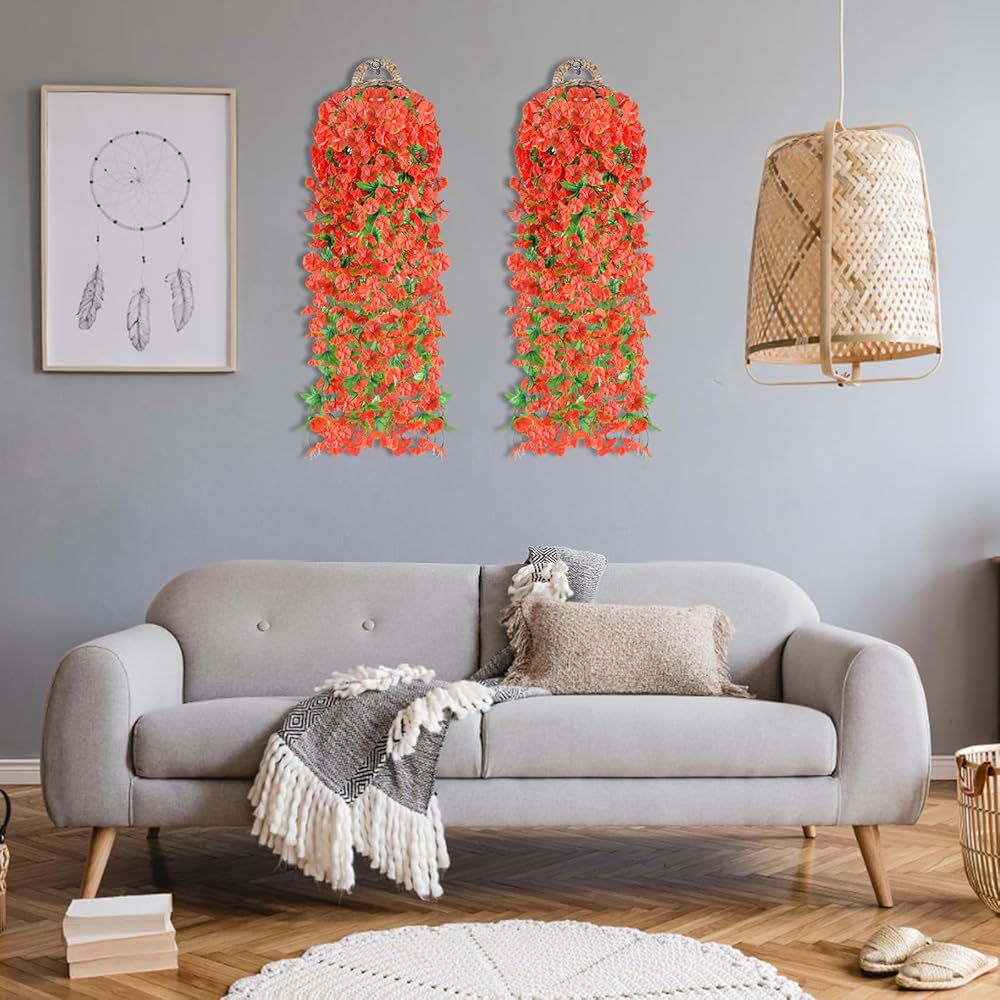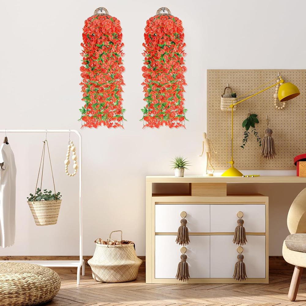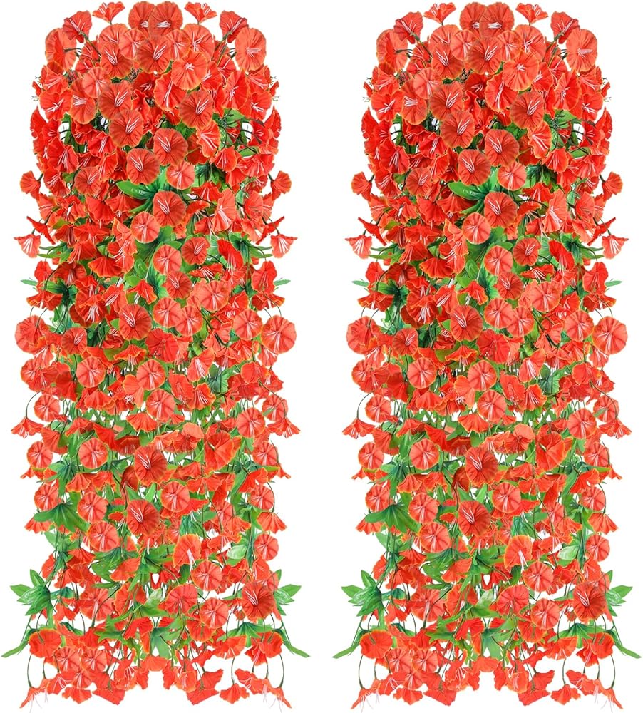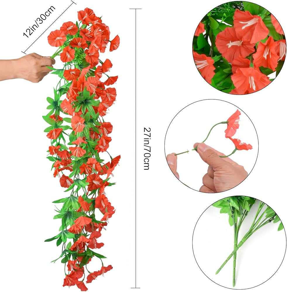 【2 Pcs Artificial Morning Glory Set】You will get 2 pcs artificial wall hanging flowers ,each plastic flower has 118 flower heads and 52 leaves. The diameter of flower is 1.57 inches, The total fake flower is about 31.5 inches. you can arrange and bend the flowers as you like freely.