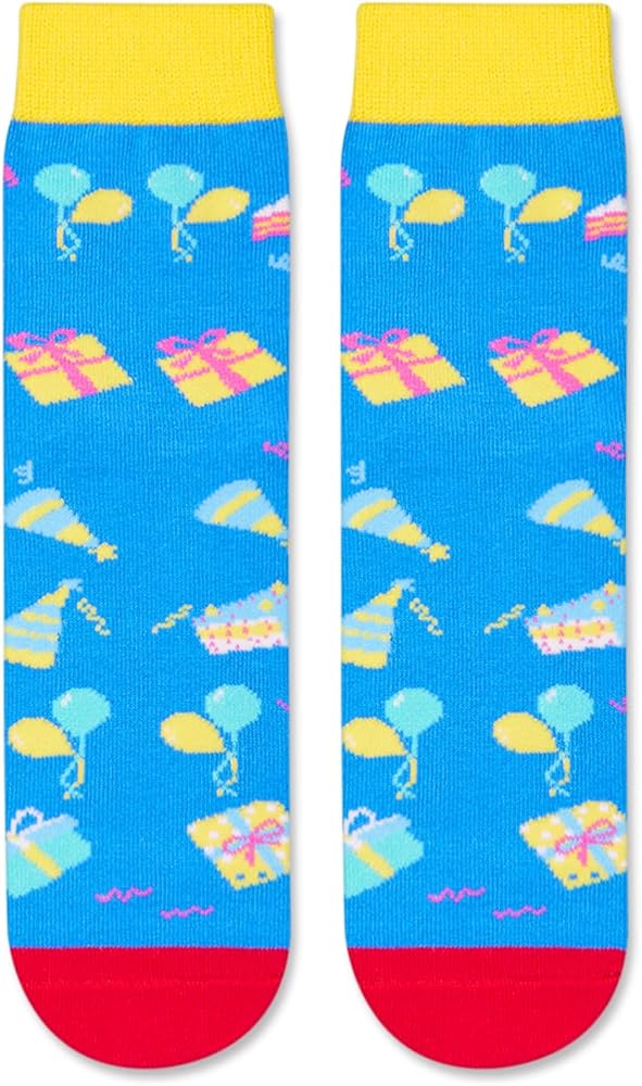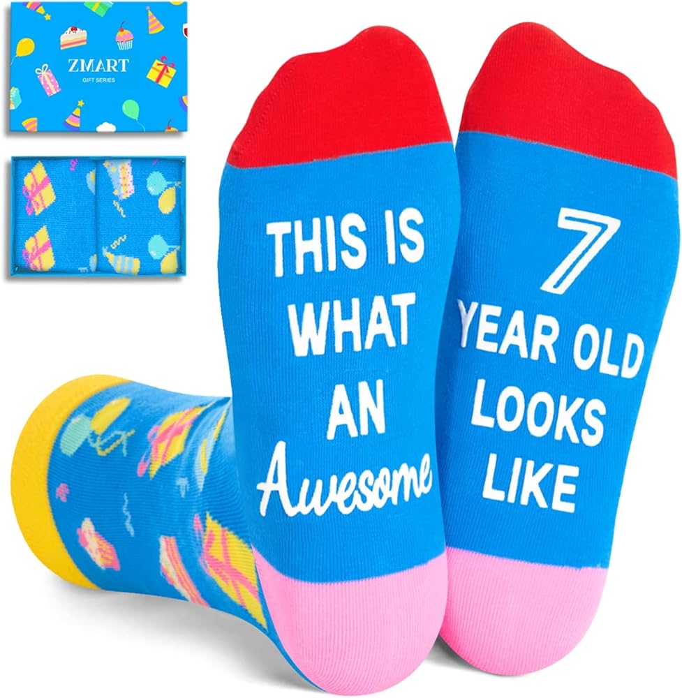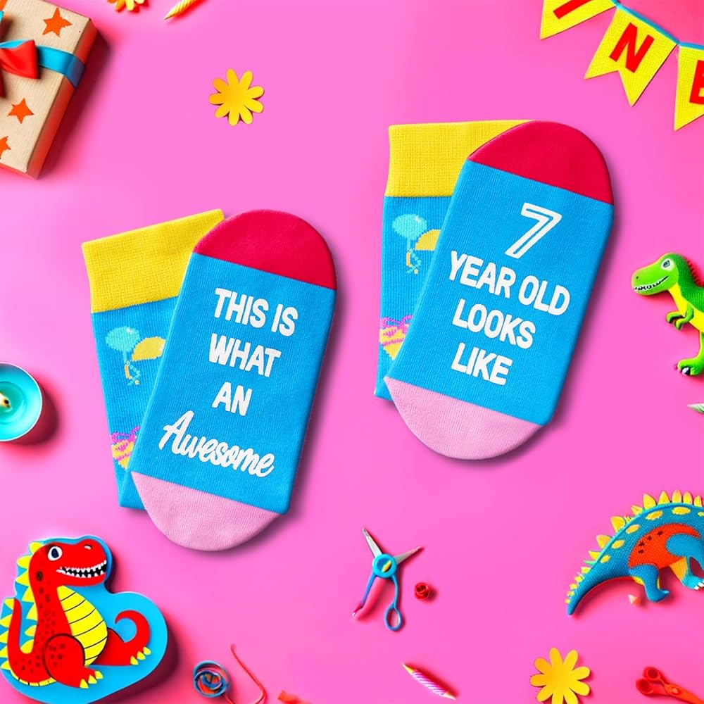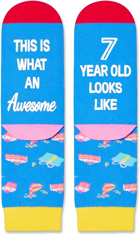 هدايا للأطفال: تتميز هذه الجوارب بهدايا عيد ميلاد وبالونات وكعك وعناصر أخرى في الأعلى، بينما يتميز الجزء السفلي برسالة سرية مرحة مكتوبة بحبر غير قابل للانزلاق: "هذا هو ما يبدو رائعًا بعمر 10 سنوات." إنها مناسبة لأي هدايا عطلة، مثل هدايا عيد الميلاد، أو هدايا الكريسماس، أو هدايا الفيل الأبيض.