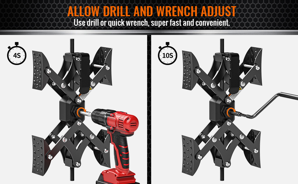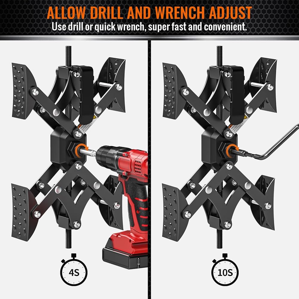 【السماح بضبط المثقاب ومفتاح الربط】يدعم مثبت RV على شكل X من Sulythw كلاً من طرق تركيب مفتاح الربط والمثقب، وتأتي المجموعة مجهزة بمفتاح ربط سريع ومحول مثقاب. مع مثقاب كهربائي، يمكن تأمين مثبت عجلة RV بسرعة في ثوانٍ. إنه حقًا موفر للعمالة. يقوم مفتاح الربط مباشرة بضبط توسع وانكماش مثبت الإطارات RV. يتطلب تركيب المثقاب توصيل محول الحفر.