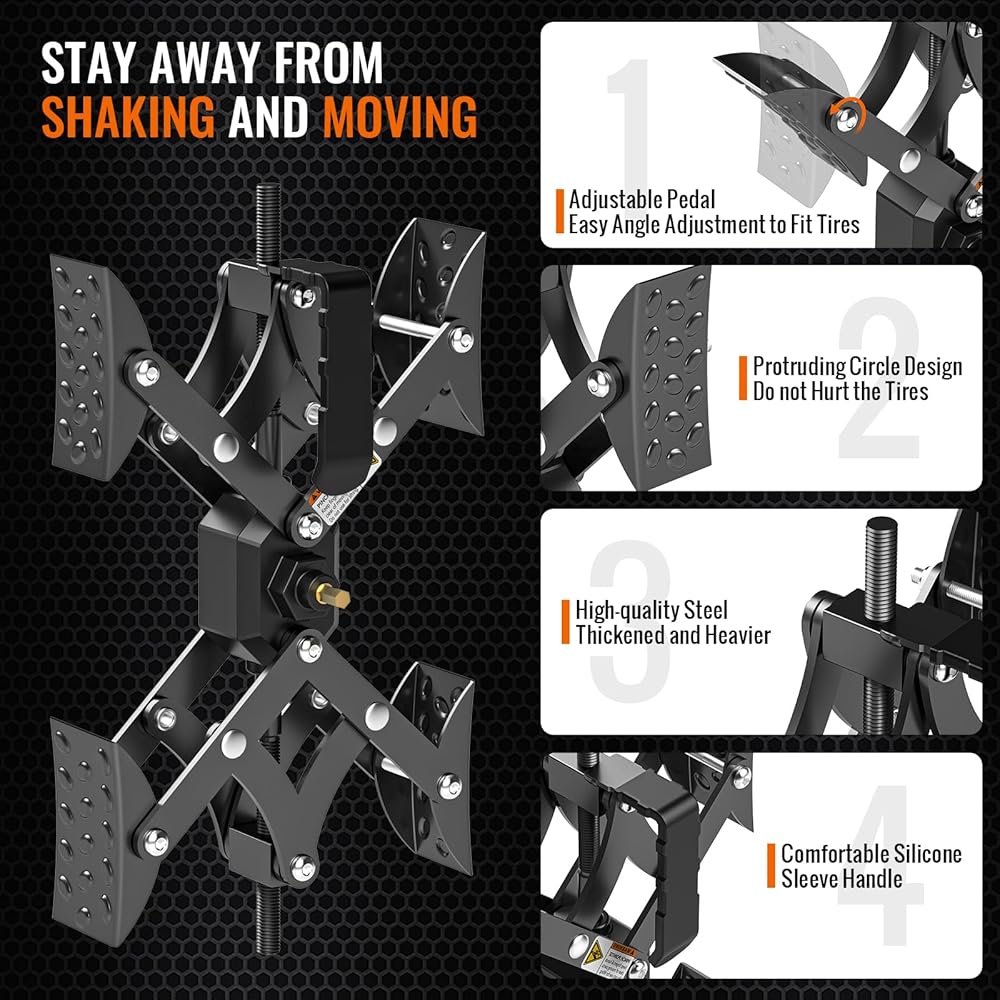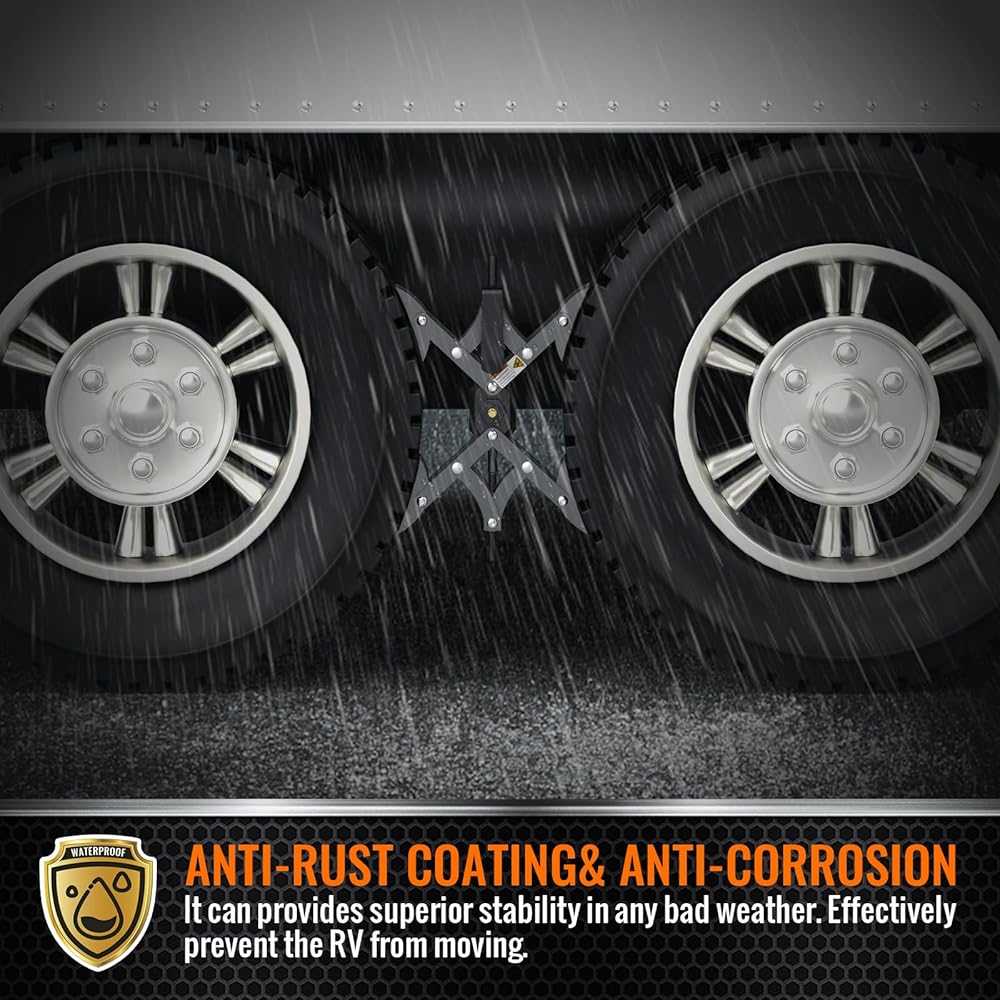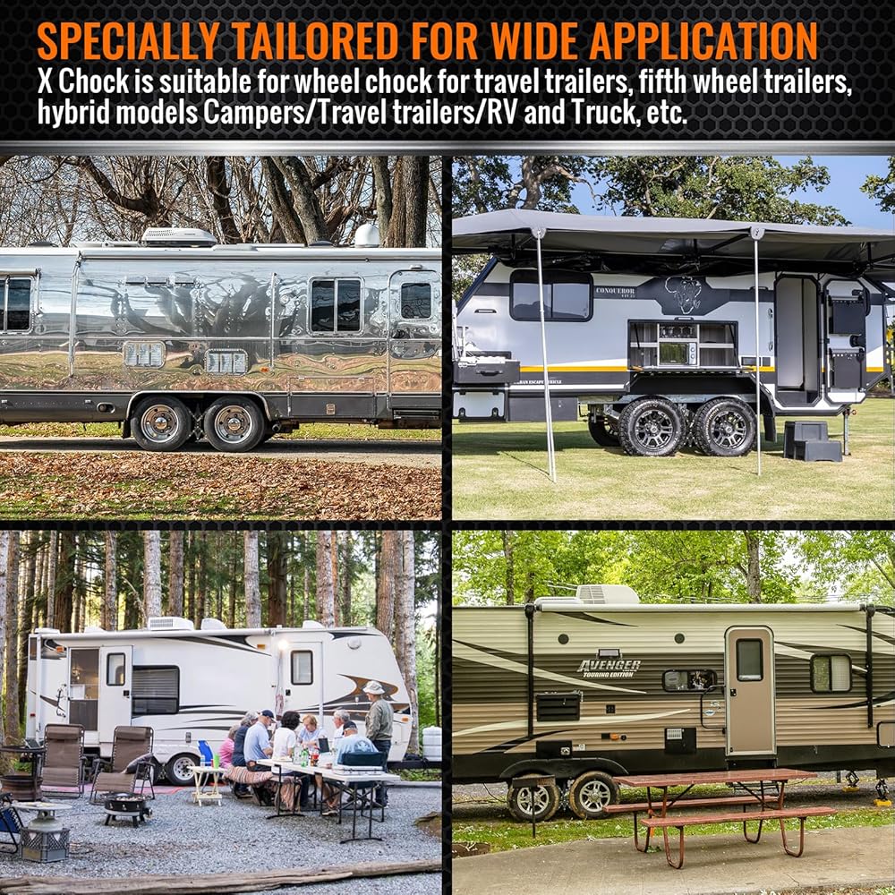 【لا تؤذي الإطارات - أكثر استقرارًا】مثبت عجلة تشوك على شكل X لمقطورات السفر مصنوعة من فولاذ عالي الجودة، سميك وثقيل، مضاد للتآكل، مناسب للاستخدام في الهواء الطلق. تصميم دواسة قابل للتعديل ليناسب منحنى الإطار بشكل أفضل. تتميز دواسة صدمات عجلة RV بتصميم مضلع مرتفع لزيادة الاحتكاك، وتمنع انزلاق مقطورات السفر وتحافظ على ثبات إطارات التخييم RV. فهي توفر ثباتًا أفضل دون إتلاف إطارات RV.