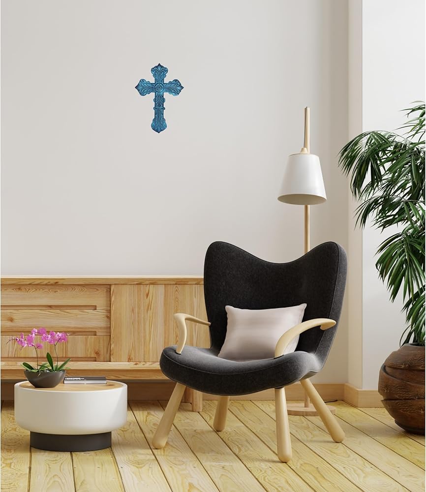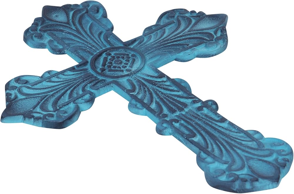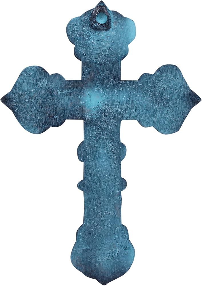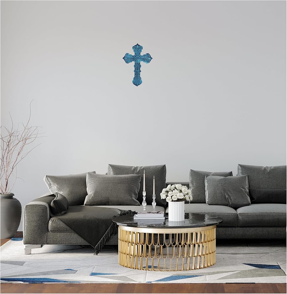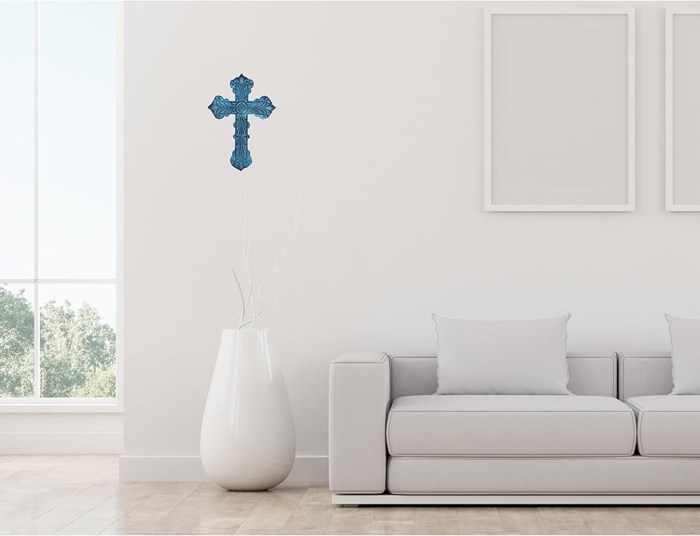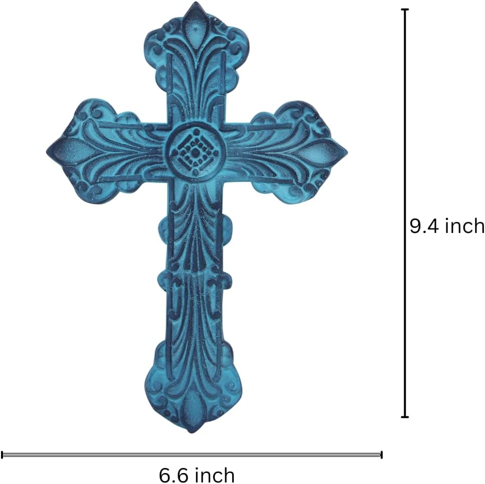 Castleore سهلة التعليق على الحائط لديكور المنزل الصلبان المسيحية الدينية للجدار | الأفضل للمنزل والمكتب وكهدية | الأزرق العتيقة | الحجم L 9.4 W 6.6 بوصة |