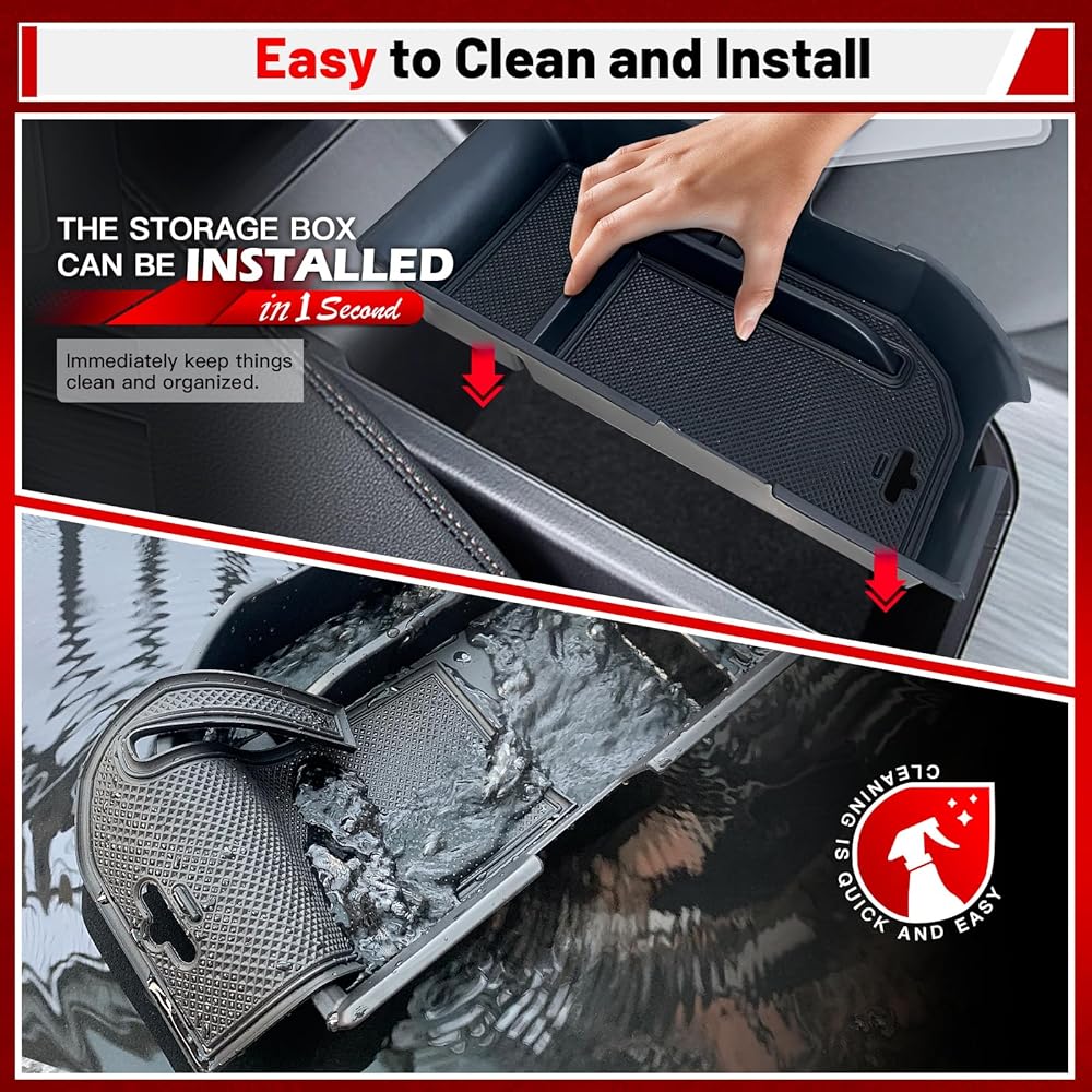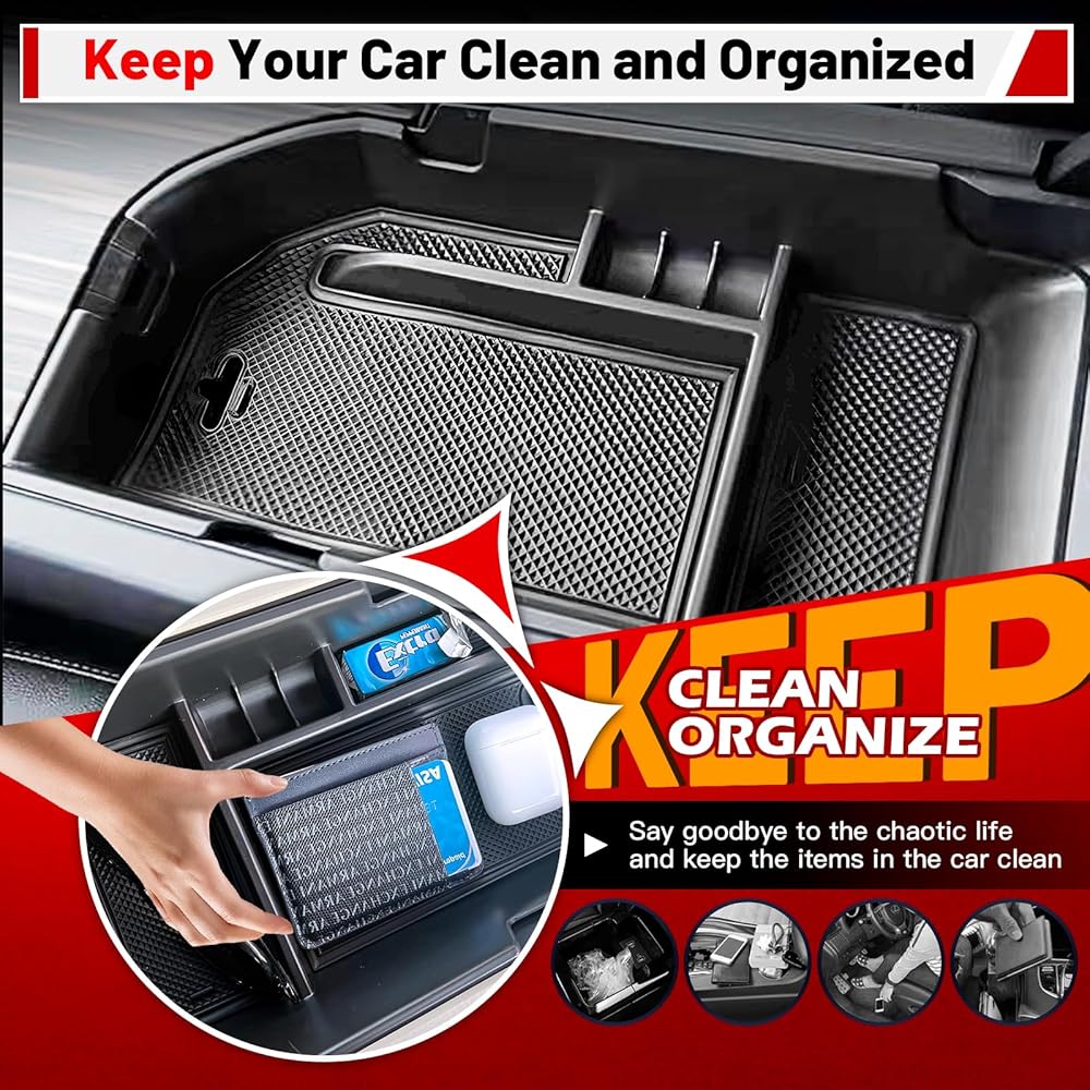 • سهل التنظيف: مصنوع من مادة بلاستيك ABS عالية الجودة، صندوق التخزين هذا سهل التنظيف، مما يضمن الحصول على سيارة داخلية أنيقة ومرتبة في جميع الأوقات. من السهل أيضًا الحفاظ على المادة المقاومة للتآكل، مما يجعلها حلاً مفيدًا للحفاظ على تنظيم سيارتك.