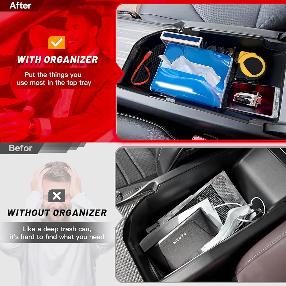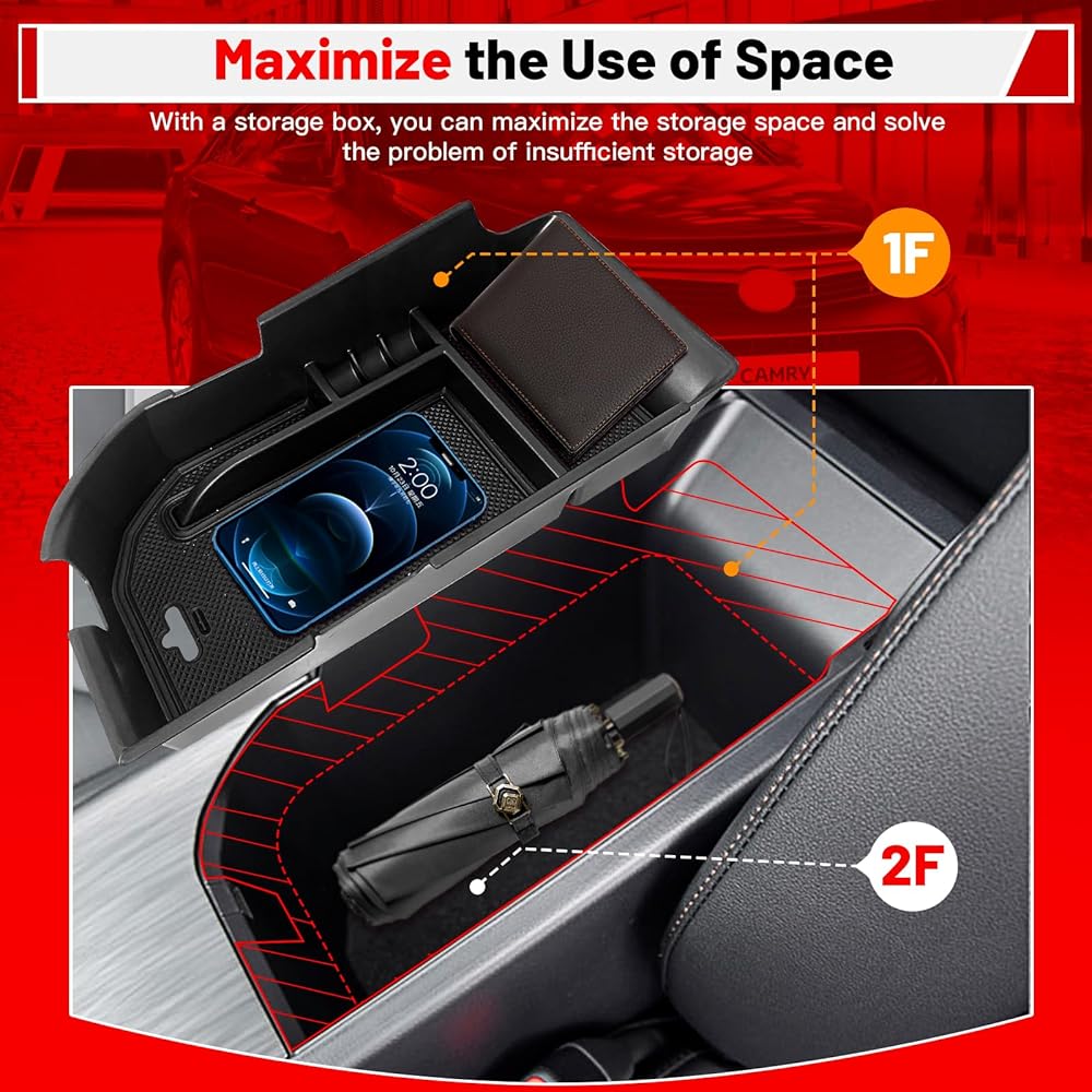 • مناسب خصيصًا لسيارة Toyo-ta Camry 2018-2024: صندوق تخزين منظم وحدة التحكم المركزية هذا مناسب خصيصًا لـ 2018 2019 2020 2021 2022 2023 2024 Toyo-ta Camry XLE XSE و2020 2021 2022 2023 2024 Camry LE SE، مما يوفر مساحة مناسبة للمنتجات التي يجب الحصول عليها بسهولة. فهو يضاعف المساحة لتعزيز التنظيم، مما يزيد من كل بوصة من الجزء الداخلي لسيارتك.