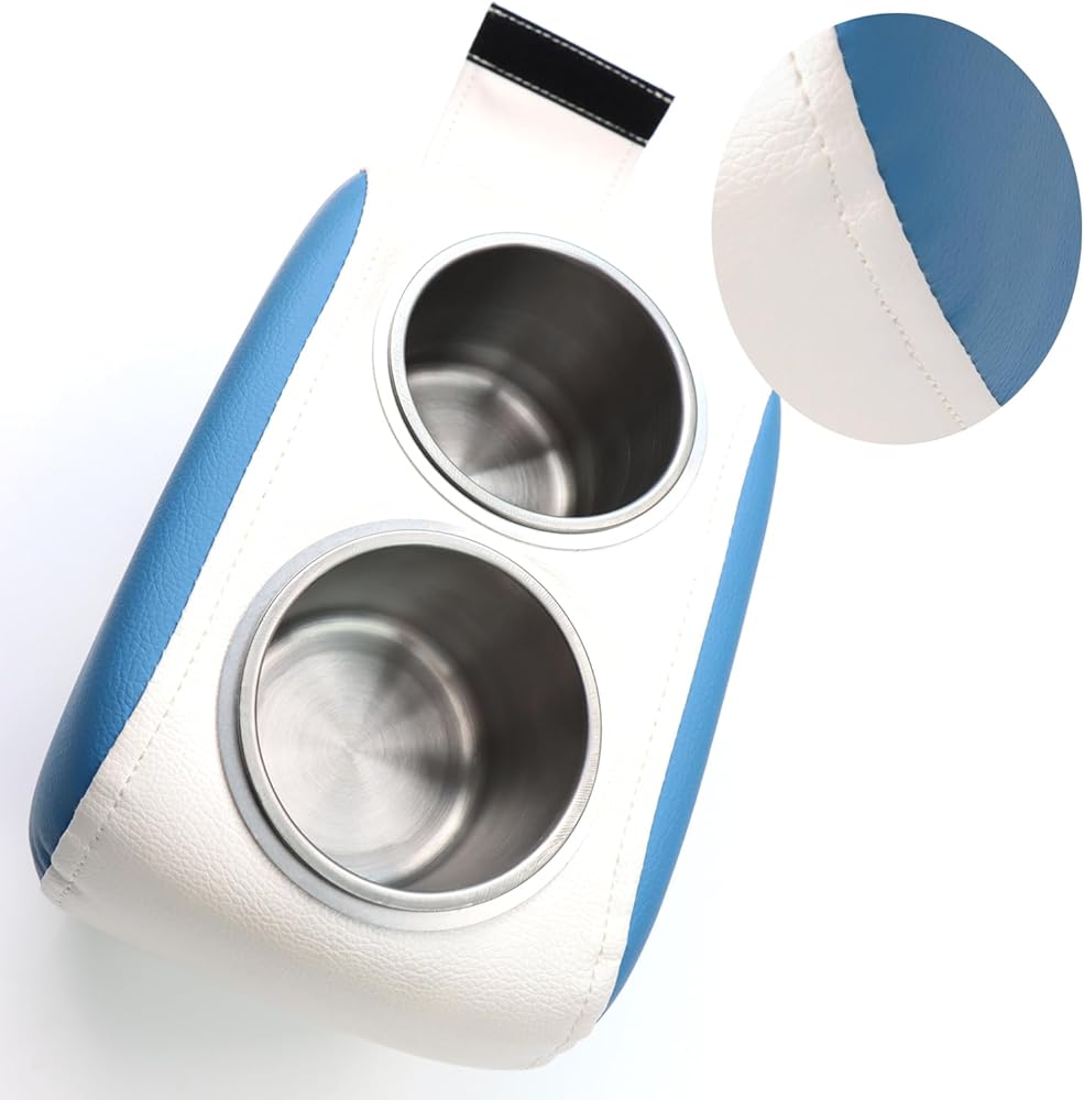 Stainless made double cups in it,and the holder body made of high density memory foam,anti-UV waterproof vinyl,solid construction and high quality material extended the boat cup holder service life.