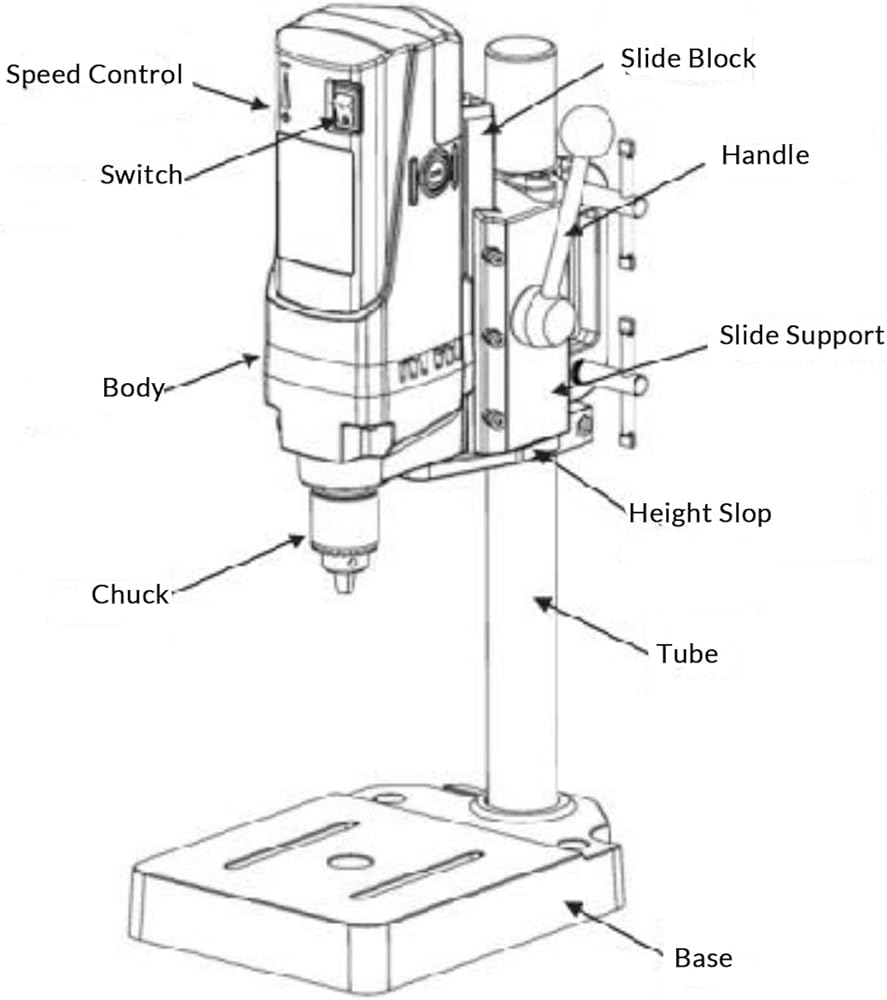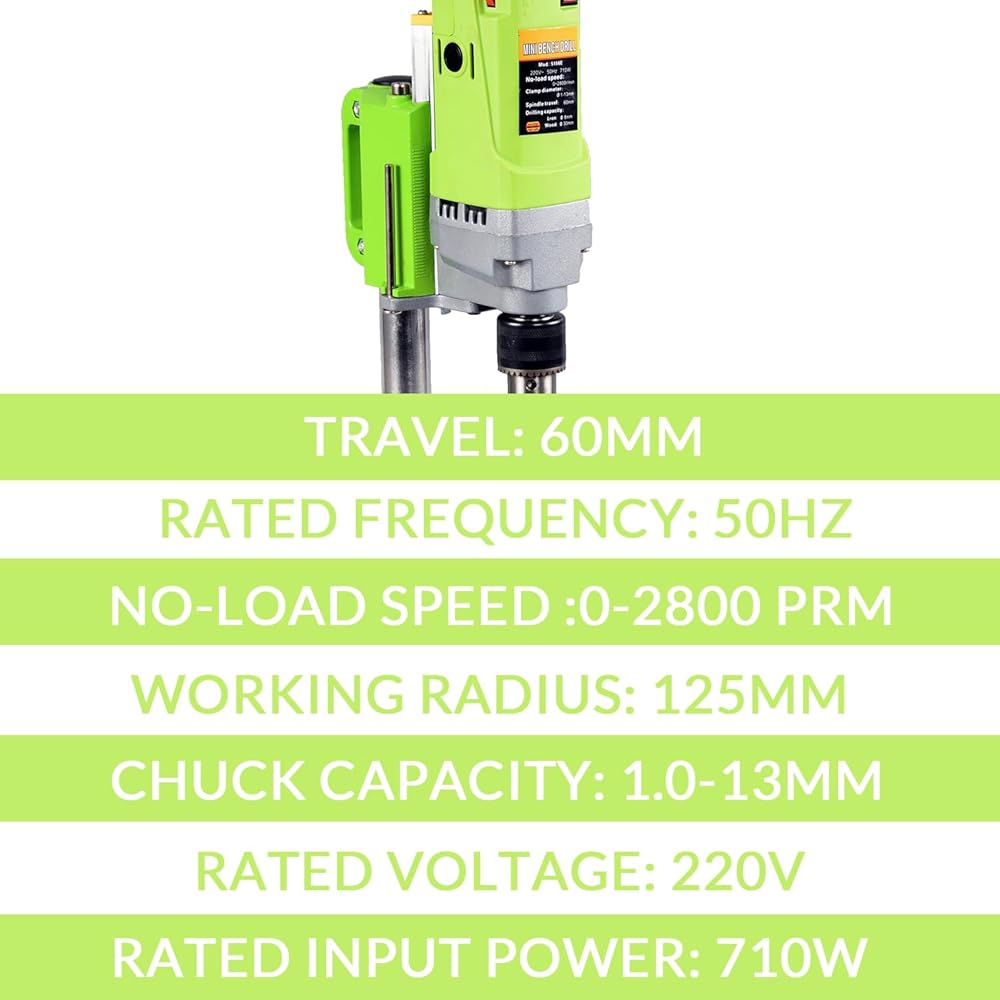 يرجى اتباع تعليمات التشغيل والسلامة الخاصة بمثقاب المقعد. طاقة الإدخال: 710 واط؛ قطر مشبك الحفر: 1-13 مم؛ سرعة عدم التحميل: 0-2800r/min؛ سفر المغزل: 60 مللي متر/2.36 بوصة ؛ سعة المثقاب (القطر): الخشب: 30 مم/1.18 بوصة، الحديد: 8 مم/0.31 بوصة؛ نصف قطر العمل: 130 مم؛ حجم العمود: 32*25*400 مللي متر ؛ حجم العمل: 185*175 مللي متر