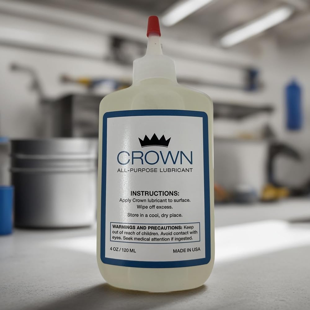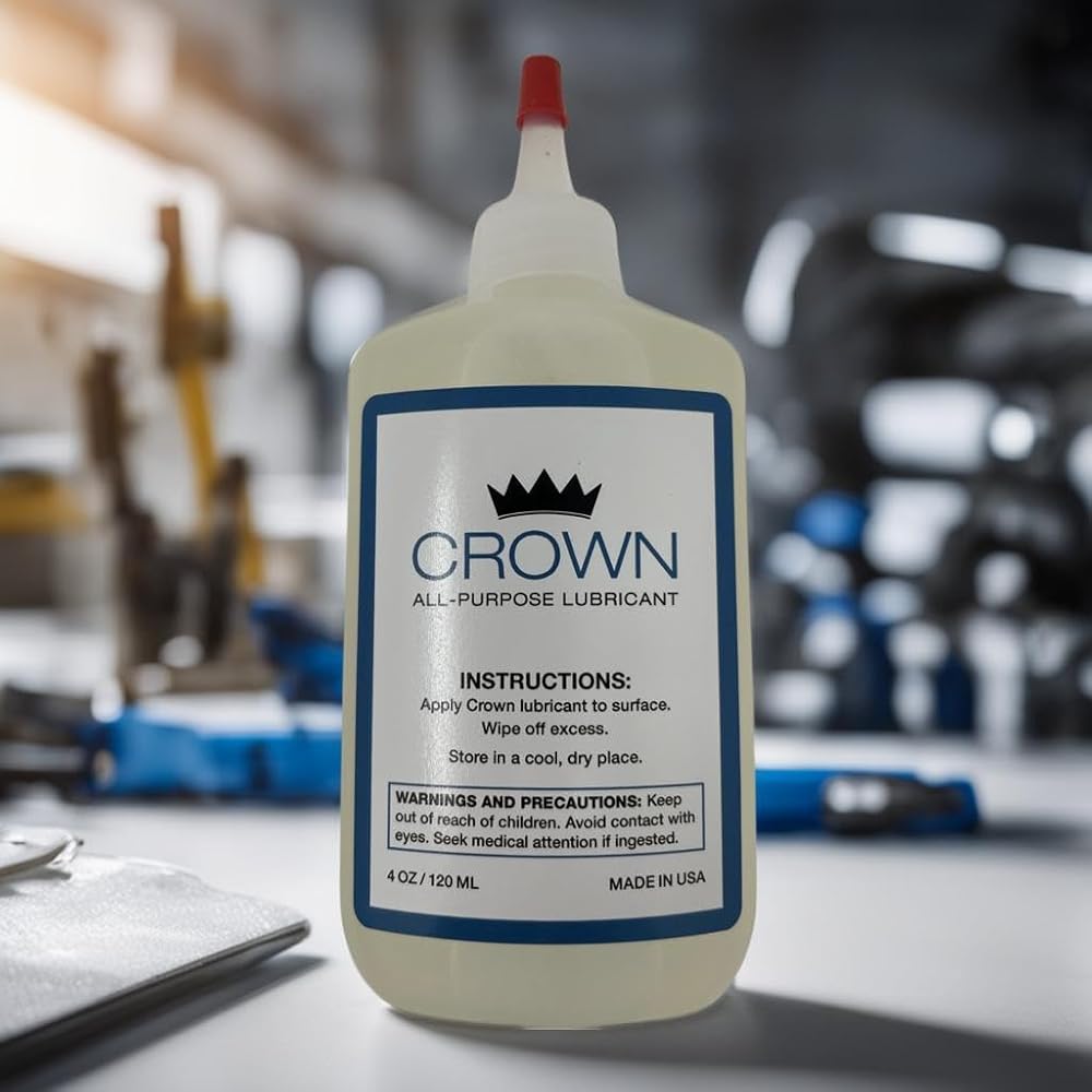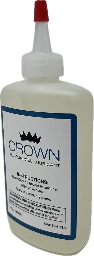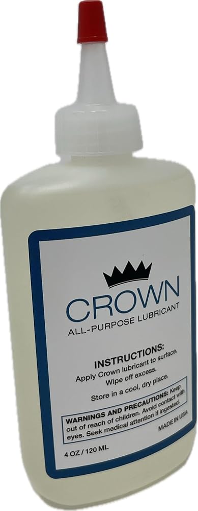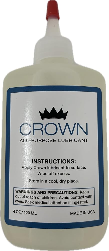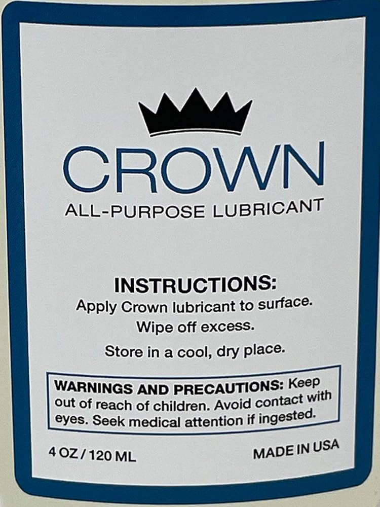 Crown Premium Lubricant is the perfect door hinge lubricant, lock lubricant, garage door lubricant, and all-around your home lubricant. Non-toxic, non-hazardous, fortified with molecular synthetic esters, and proudly manufactured and bottled in the United States of America.