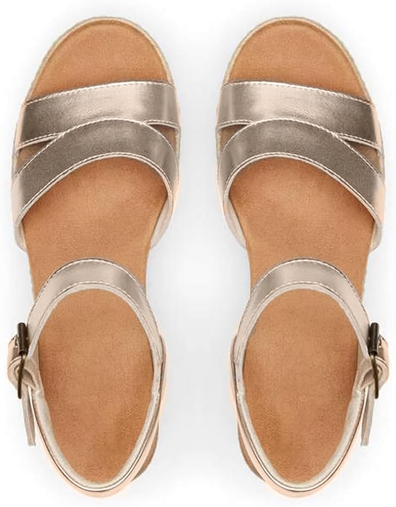👡[Leather and weaving technology] Women's sandals are made of metallic leather uppers, which are soft, comfortable and more wear-resistant. The jute-woven wedge heels create a casual atmosphere for your summer beach vacation.