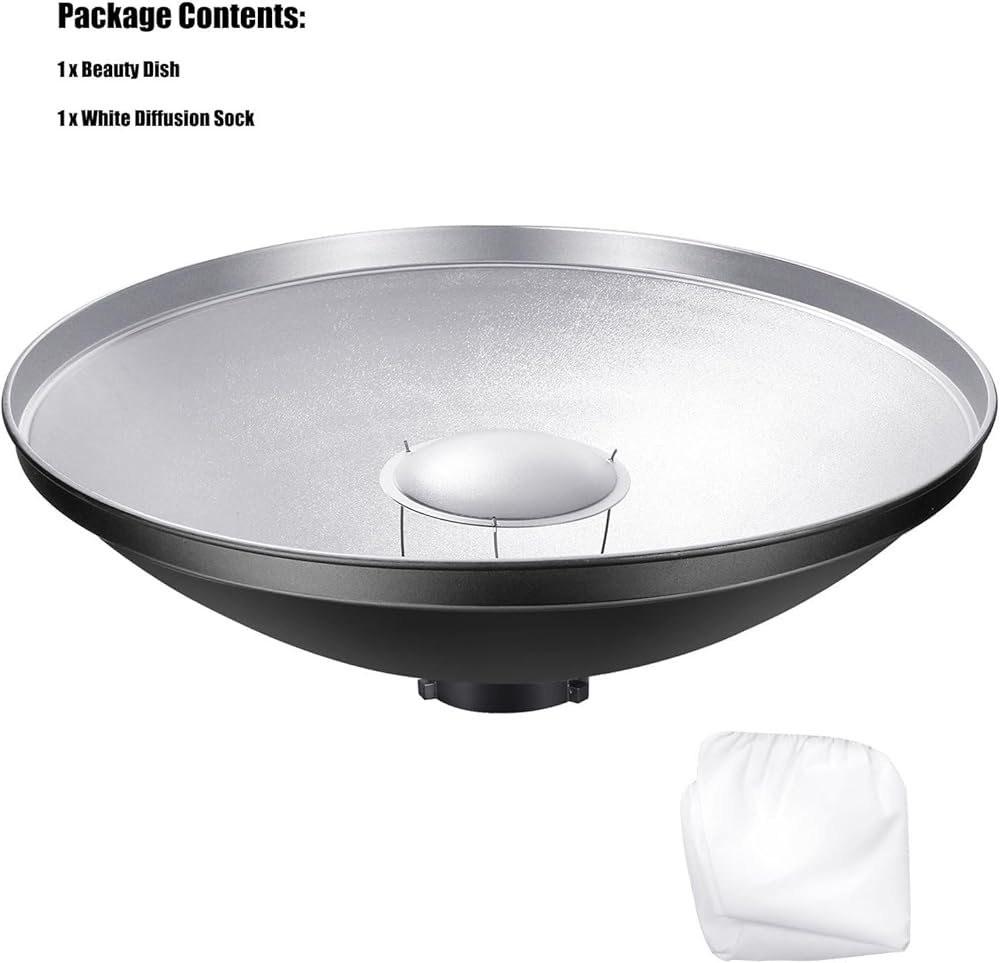 【استخدمه مع جورب التوزيع】 للحصول على إخراج ناعم ومتساوي، يمكنك تغطية جورب التوزيع على العاكس لتوسيع مصدر الضوء وجعل موضوعك مضاءً بشكل مثالي دون أي ظل.