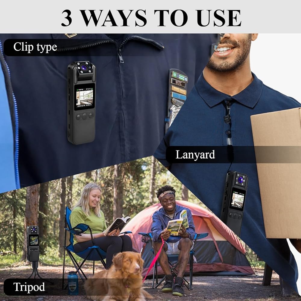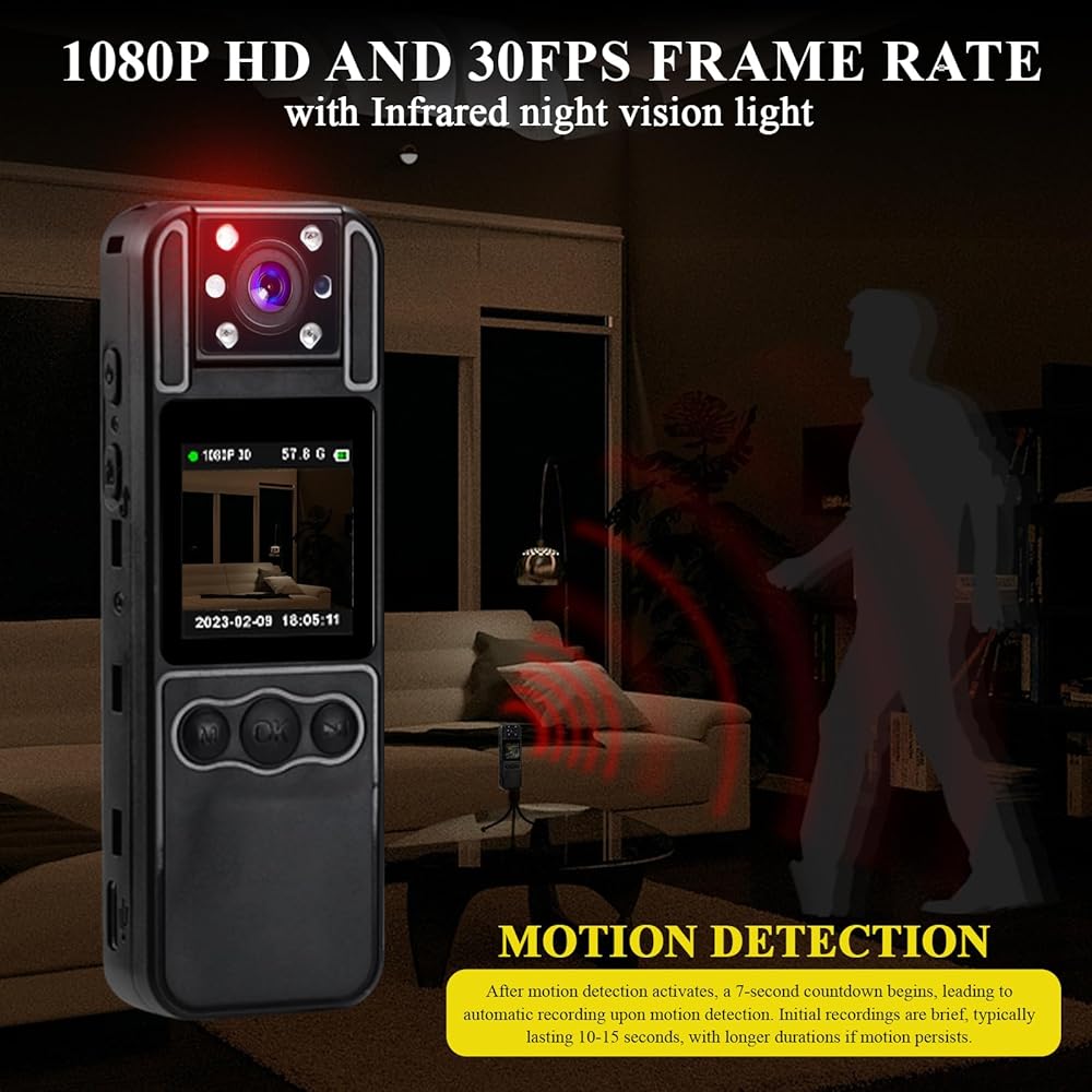 • 📸 【 كشف الحركة والرؤية الليلية 】 يتميز مسجل كاميرا الجسم بقدرة كشف الحركة التي يمكنها التقاط الحركة والاستمرار في التسجيل دون ملء وحدة التخزين. يمكن أن يساعدك على توفير المزيد من الطاقة ومساحة الذاكرة عندما لا تحتاج إلى تسجيل جميع وقت. بالإضافة إلى ذلك، ستتحول الكاميرا التي يتم ارتداؤها على الجسم تلقائيًا إلى وضع الرؤية الليلية بواسطة عدسة الأشعة تحت الحمراء المكونة من 6 قطع للتسجيل عندما تكون في بيئة مظلمة/في الليل.