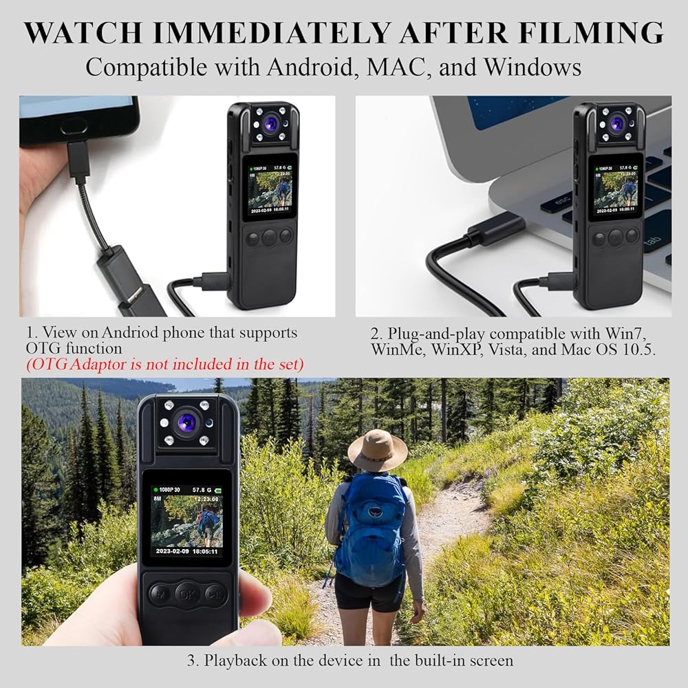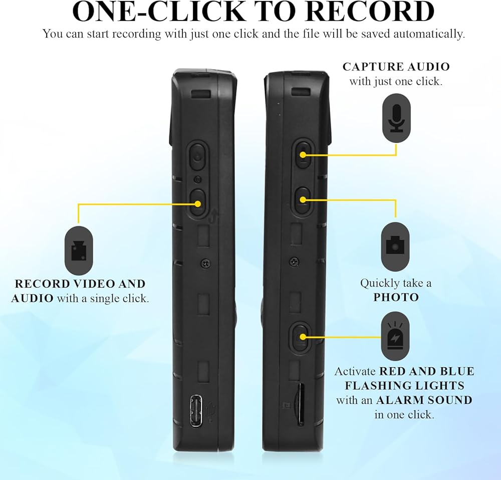 • 📸 【دعم تشغيل الجهاز المحلي 】 كاميرات الجسم الشخصية LANDTEK سهلة الاستخدام للغاية. التقط المعلومات المهمة بسرعة من خلال التسجيل بنقرة واحدة. تسجيل متكرر، مؤشر إنذار رئيسي واحد. قم بمراجعة مقاطع الفيديو الخاصة بك على الفور على شاشة OLED الملونة، دون الحاجة إلى جهاز كمبيوتر. يمكنك معاينة التسجيلات وحذف الملفات وضبط الإعدادات بسهولة