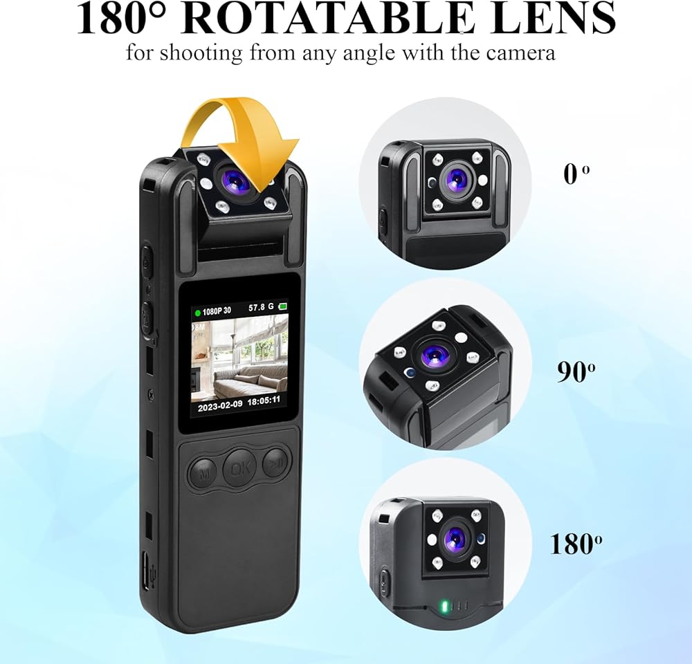 • 📸 【عدسة قابلة للدوران بزاوية 180 درجة بزاوية واسعة 120 درجة 】تعتمد كاميرات LANDTEK التي يتم ارتداؤها على الجسم عدسة قابلة للدوران بزاوية 180 درجة وزاوية واسعة، مما يضمن لقطات مثالية من خلال ضمان تسجيل الكاميرا بالزاوية المرغوبة. توفير زوايا رؤية مرنة للعمل والرياضة أو أي مغامرة في الهواء الطلق. إنها الأداة المثالية للتوثيق والمراقبة الشاملة.