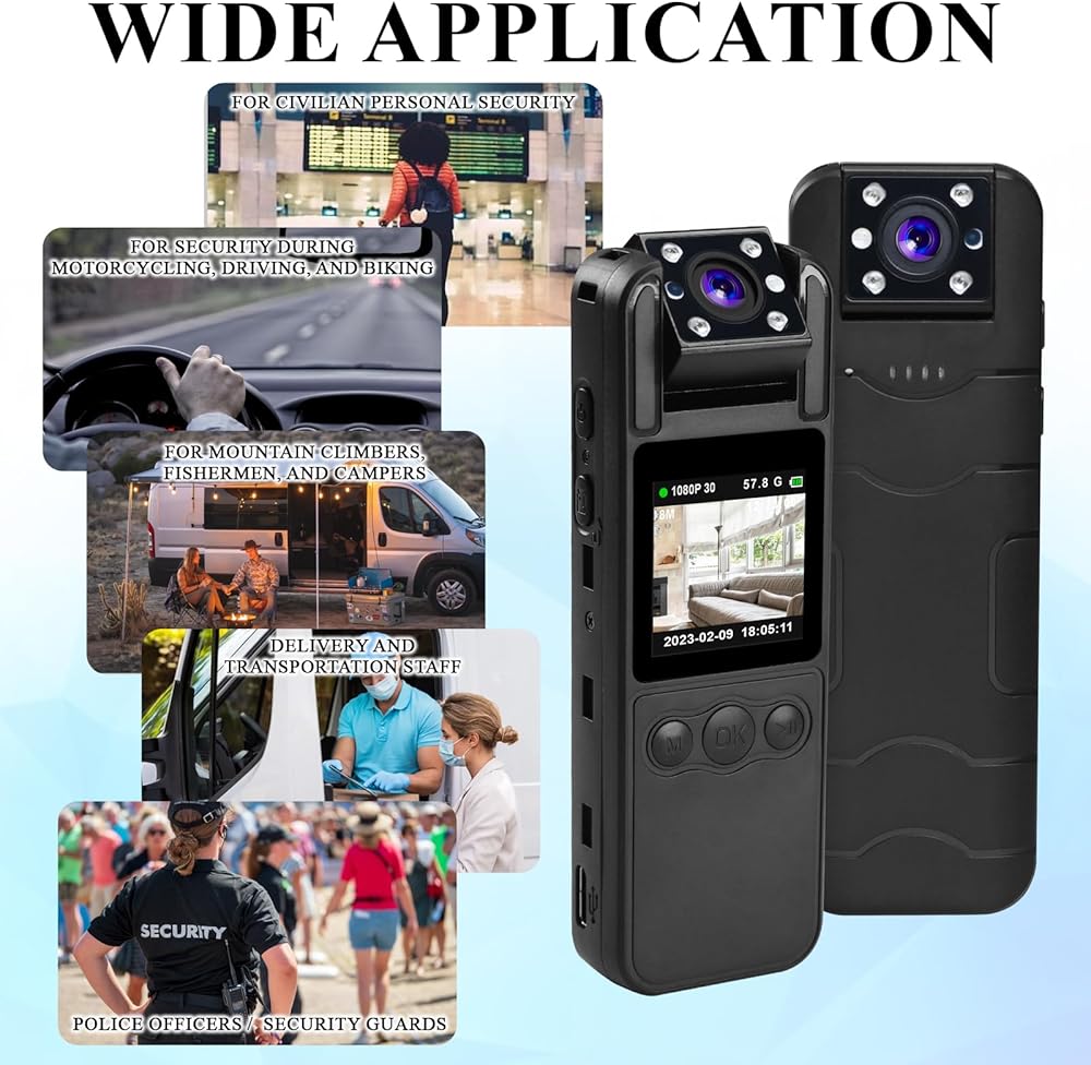 كاميرا يتم ارتداؤها على الجسم بدقة 1080 بكسل، كاميرا يمكن ارتداؤها مع عدسة قابلة للتدوير بزاوية 180 درجة واكتشاف الحركة، وكاميرا للجسم سعة 64 جيجابايت مع تسجيل صوتي وفيديو ورؤية ليلية بالأشعة تحت الحمراء للمدنيين، وسجل الخدمة، وإنفاذ القانون