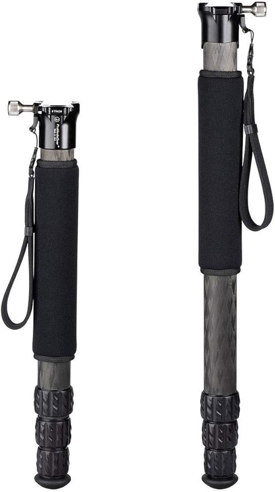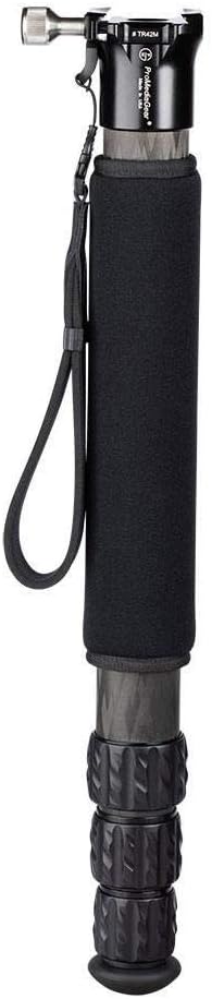 The ProMediaGear TR42M Carbon Fiber Monopod is durable and lightweight support you can carry every day. At 1.5, it is perfect for everyday shooting. Plus, it is compatible with any Arca-swiss clamp. In addition to that, the TR42M extends beyond a regular monopod. It goes up to 61-inches and is great for the average adult height. Moreover, this monopod can handle cameras and lenses of up to 70 lbs. Despite its weight, it carries large lenses and heavy camera bodies without a slouch. Besides the monopod itself, the company included the ProMediaGear PBX3 Universal Bracket Plate. This camera plate fits any camera which is perfect if you do not have a camera plate yet. It should be noted that this bracket plate works with a different brand as well. Other features include a solid rubber foot - perfect for indoor shoots. But, a stainless steel spike is also included. The spikes work better in softer terrain. Lastly, a neoprene grip and a carrying strap are also included. The grip ensures a comfortable time using it. Meanwhile, you can prevent accidental drops with the carrying strap. The strap also helps free one hand without letting go of the monopod if needed.