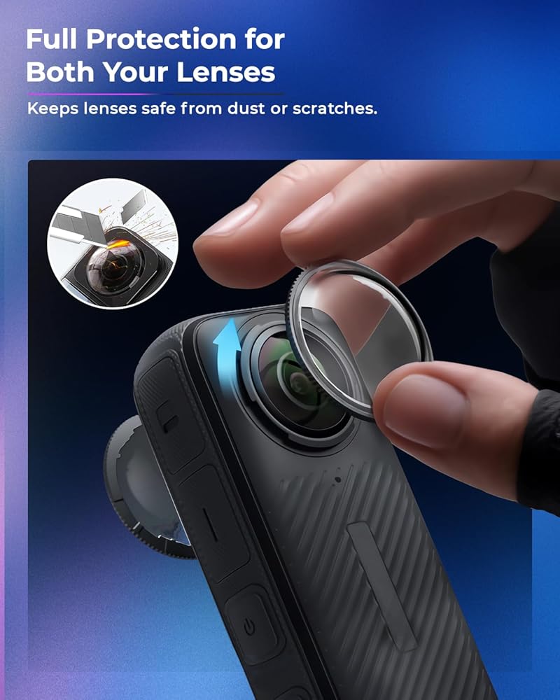 【Lens Protection】The Insta 360 x4 Lens Guard protects your Insta 360 X4 lenses from dust and scratches, and it sticks directly onto the lens for easy application and provides great protection.