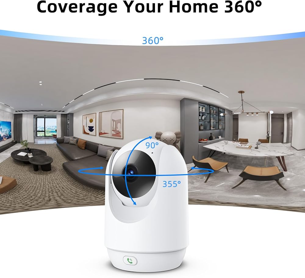 تغطية 360 درجة لمنزلك - يمكن للكاميرا الداخلية اللاسلكية أن تدور 355 درجة وإمالة 90 درجة، بينما يصل نطاق الكشف الفعال إلى 30 قدمًا، وزاوية الرؤية القصوى هي 120 درجة. بالإضافة إلى ذلك، تدعم كاميرا الحيوانات الأليفة أيضًا اتصالات wifi بتردد 5 جيجا هرتز و2.4 جيجا هرتز، والتي لا يمكنها الإرسال بشكل أسرع فحسب، بل يمكنها أيضًا تغطية نطاق أوسع. كاميرات Misecu لأمن المنزل تحقق حقًا مراقبة 360 درجة بدون نقاط عمياء