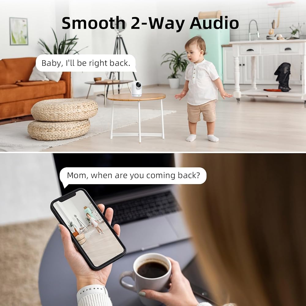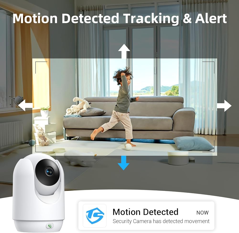 تتبع الحركة والتنبيه - بالاعتماد على تقنية الذكاء الاصطناعي المتقدمة، ستوفر هذه الكاميرات الخاصة بأمن المنزل تنبيهات في الوقت الفعلي وترسل إلى الهواتف المحمولة عند اكتشاف حركة بشرية، مما يضمن عدم تجاهل أي حركة. بالإضافة إلى ذلك، يمكن لتقنية التتبع التلقائي تتبعها وتسجيلها تلقائيًا في نطاق 355 درجة وزاوية عرض واسعة للغاية 120 درجة في نطاق 30 قدمًا.