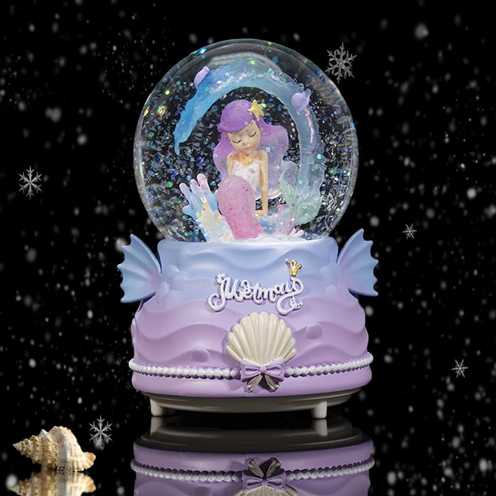 【DELICATE MERMAID SNOW GLOBES FOR GIRLS】Our exquisite Mermaid Snow Globes are the perfect gift for a little girl who loves the magical ocean and sea life. These stunning snow globes feature a beautifully crafted image of a mermaid floating gracefully in glittering snowflakes. The gentle snowflakes create a peaceful and soothing atmosphere, making them the perfect decoration to create a fairytale atmosphere.