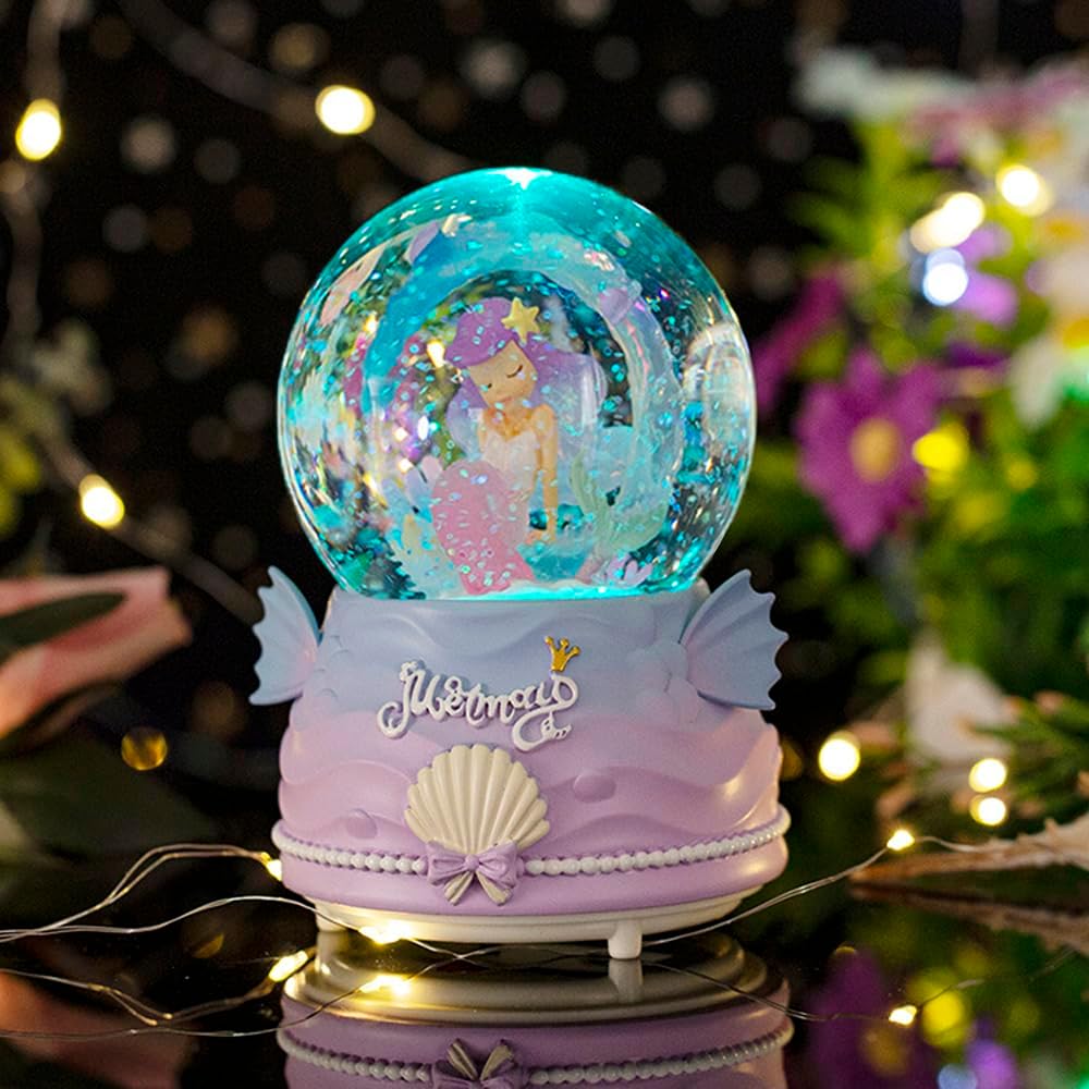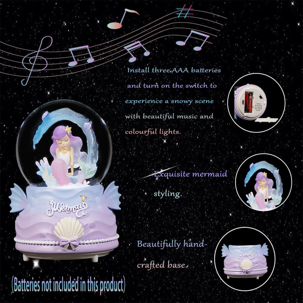 【AFTER SALES & TIPS】Are you still looking for your own room decorations? Look no further than our beautiful mermaid snow globe! Our snowglobe can start a beautiful fairy tale journey by installing 3*AAA batteries (batteries are not included, you need to buy them by yourself).We are committed to providing exceptional customer service. If for any reason you are not satisfied with your purchase, please contact us and we will make it right.