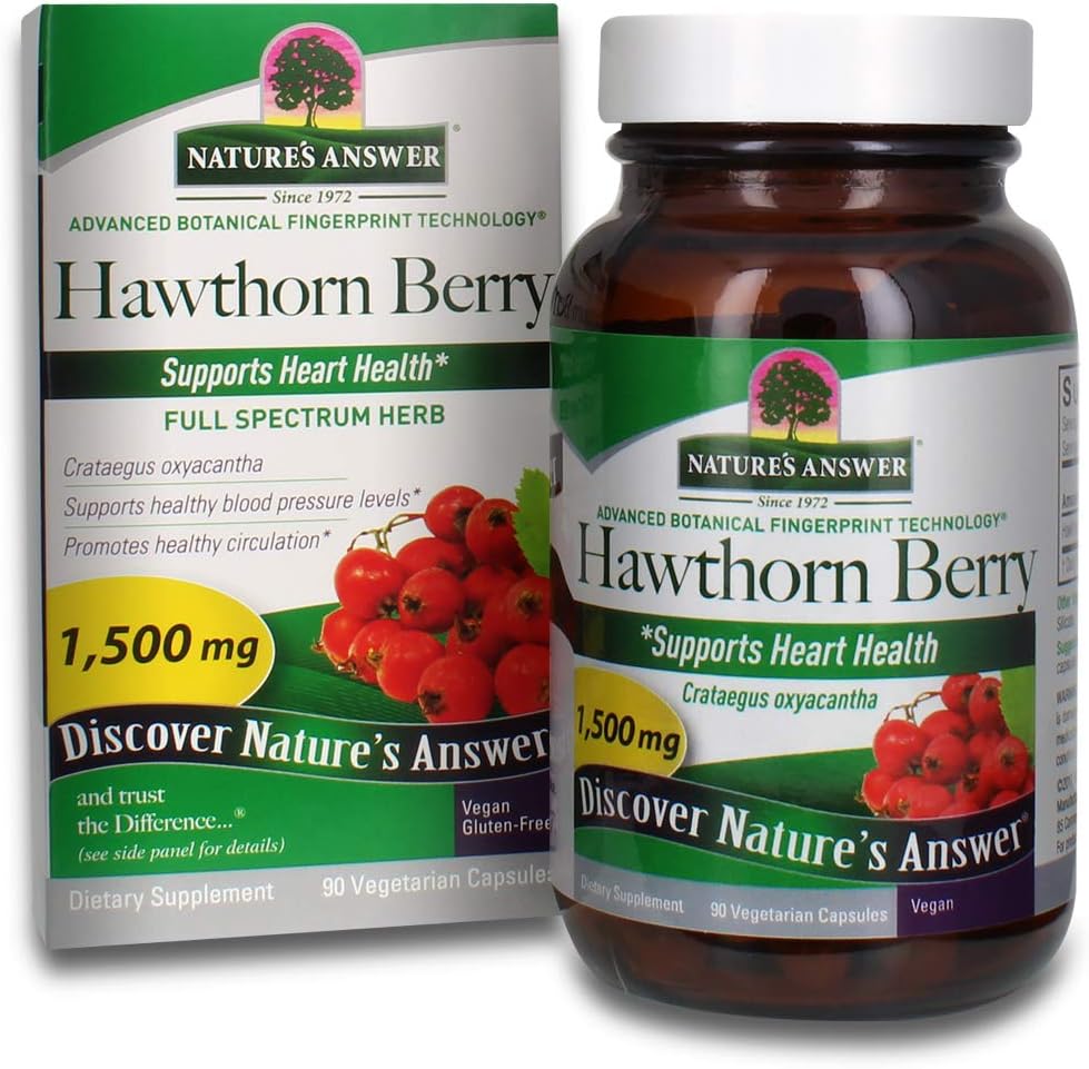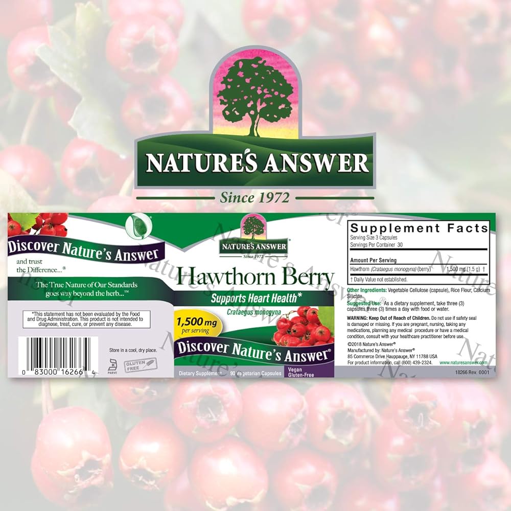 إجابة الطبيعة هاوثورن بيري 1500 مجم 90 كبسولة | يدعم نظام القلب والأوعية الدموية | خالي من الغلوتين، وغير معدل وراثيًا، ومعتمد للشريعة اليهودية | عدد واحد