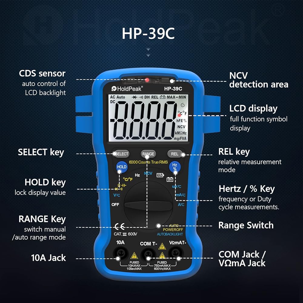 Capacitance: 99.99nF / 999.9nF /9.999μF / 999.9μF / 99.99μF