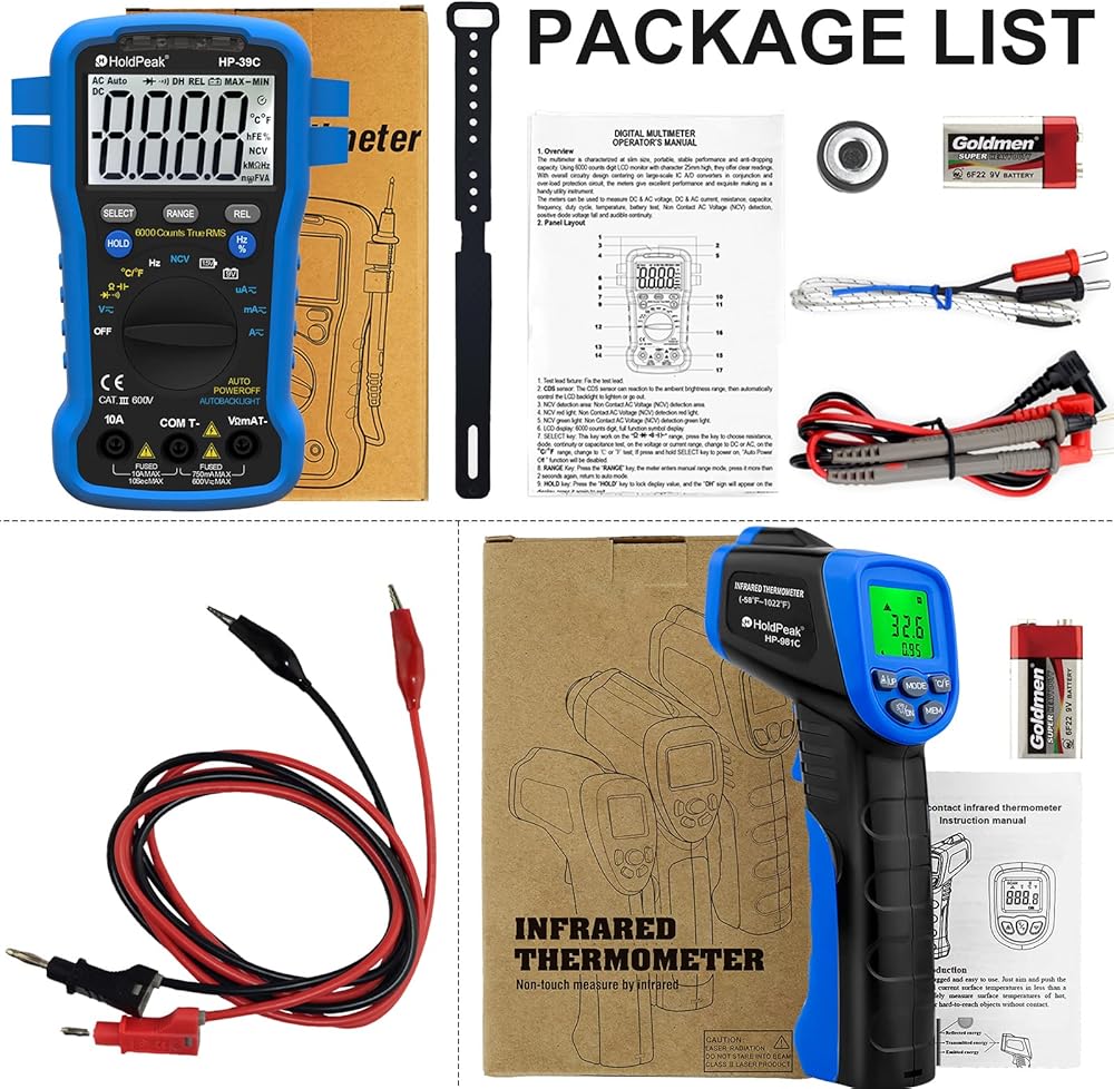 Handheld Infrared Thermometer + Digital Multimeter + Test Leads Combo Kits
