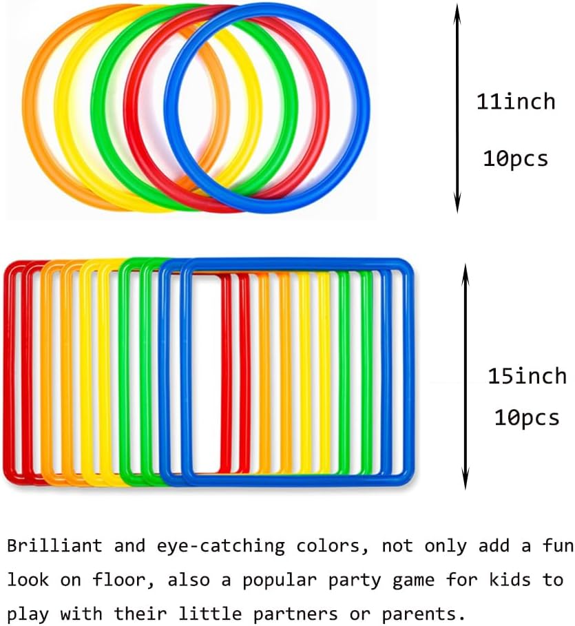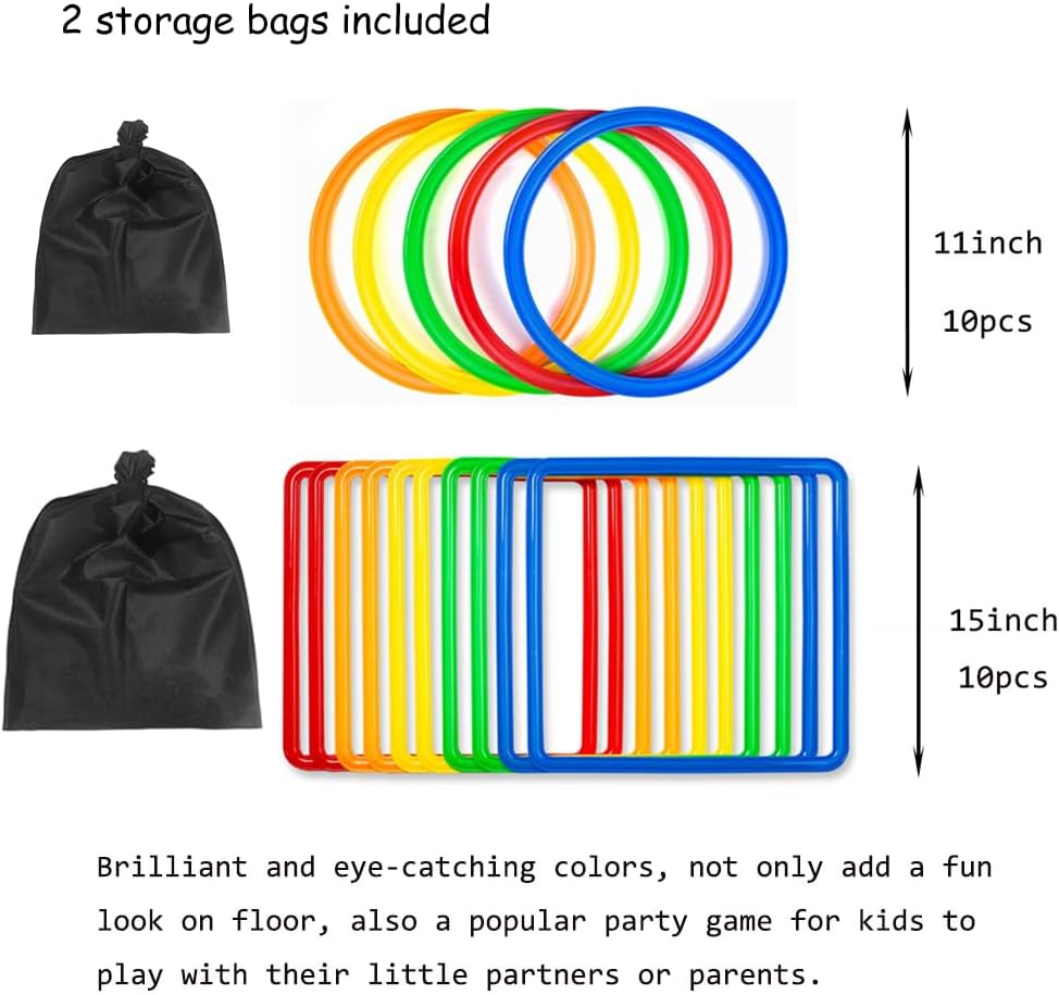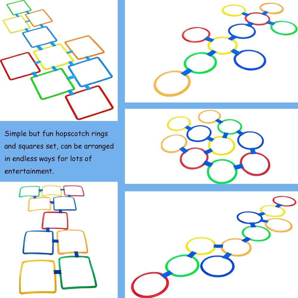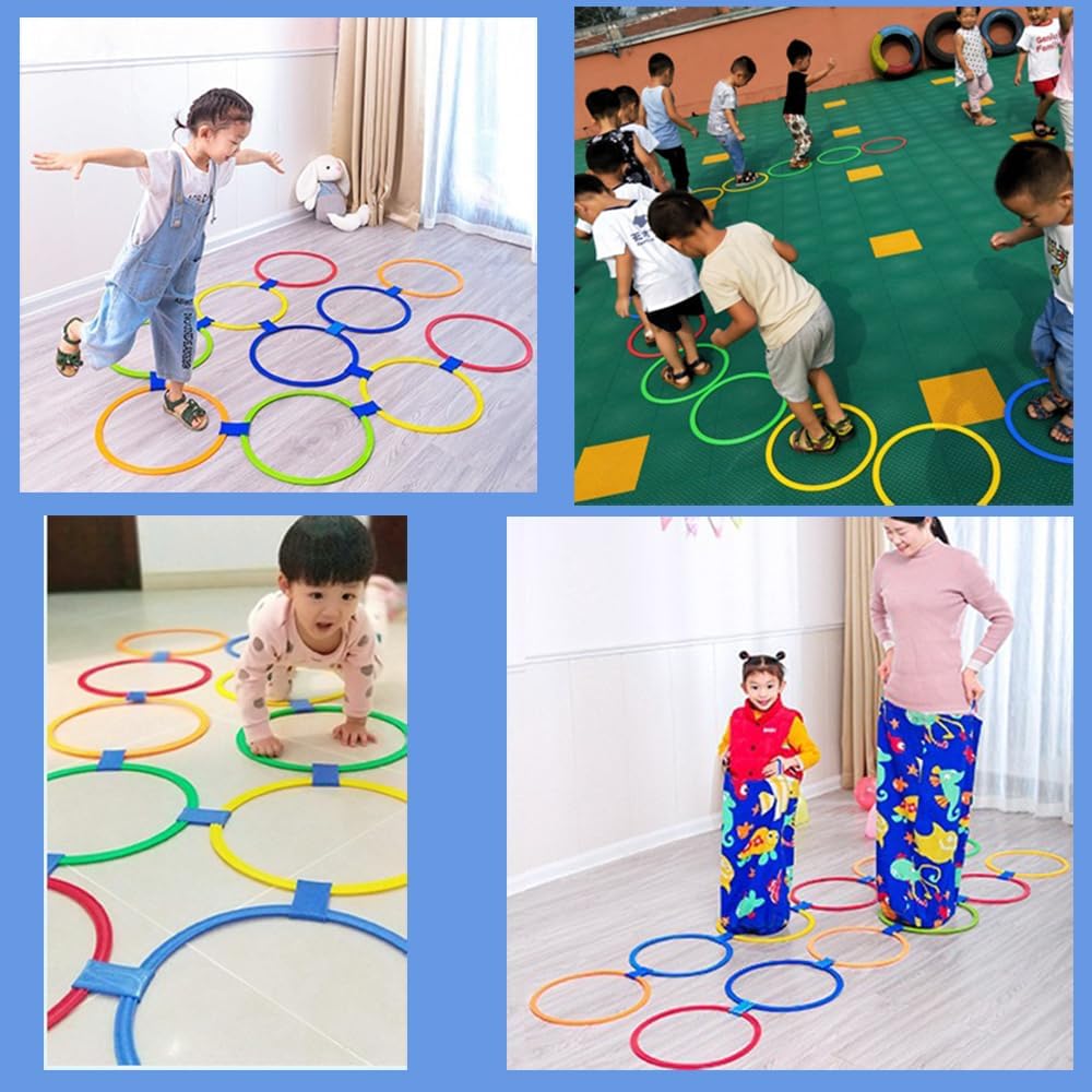 【مرنة】- الأطواق سهلة التركيب مع الموصلات، ويمكن ترتيبها بطرق لا حصر لها للحصول على الكثير من الترفيه، مثل تيك تاك تو، ولعبة اليوغا هوبسكوتش، ودورة العوائق، وألعاب الحجلة للأطفال في مرحلة ما قبل المدرسة.