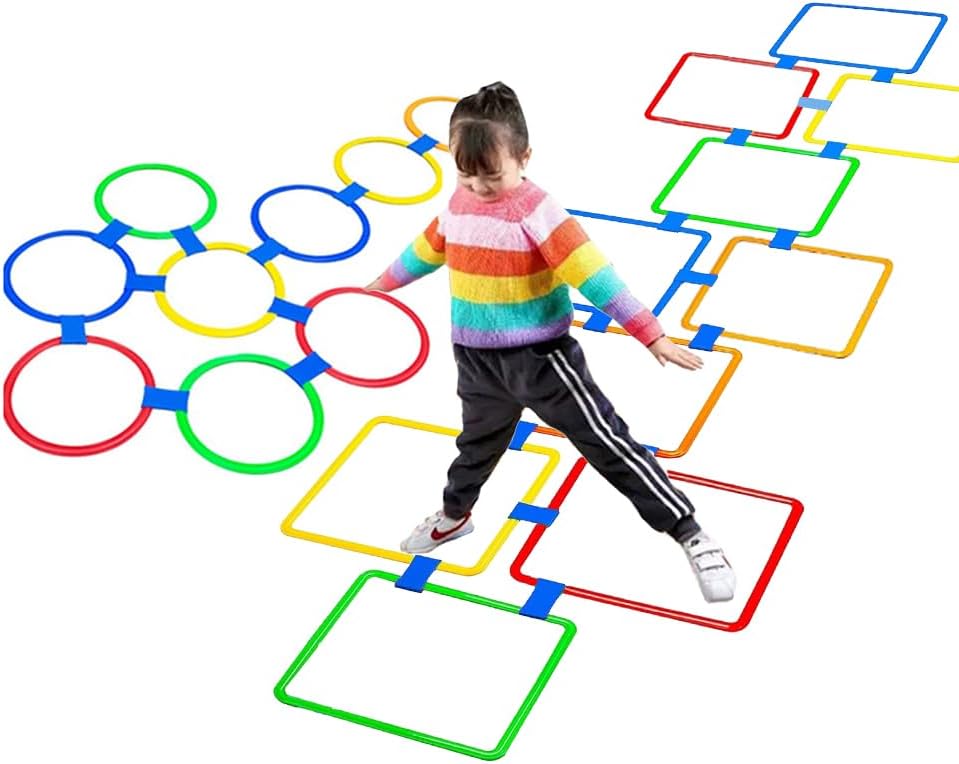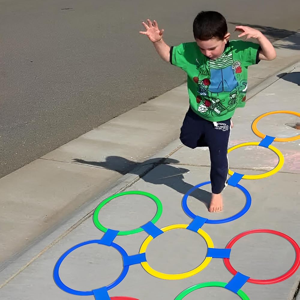 【لعبة الحجلة الكلاسيكية】- حلقات الحجلة الملونة - بسيطة ولكنها ممتعة، يتم وضعها بسهولة وتعزز النشاط، وستضيف بالتأكيد عنصرًا من الترفيه لحياتك، وتجلب الابتسامات والذكريات الرائعة للفتيات والأولاد!