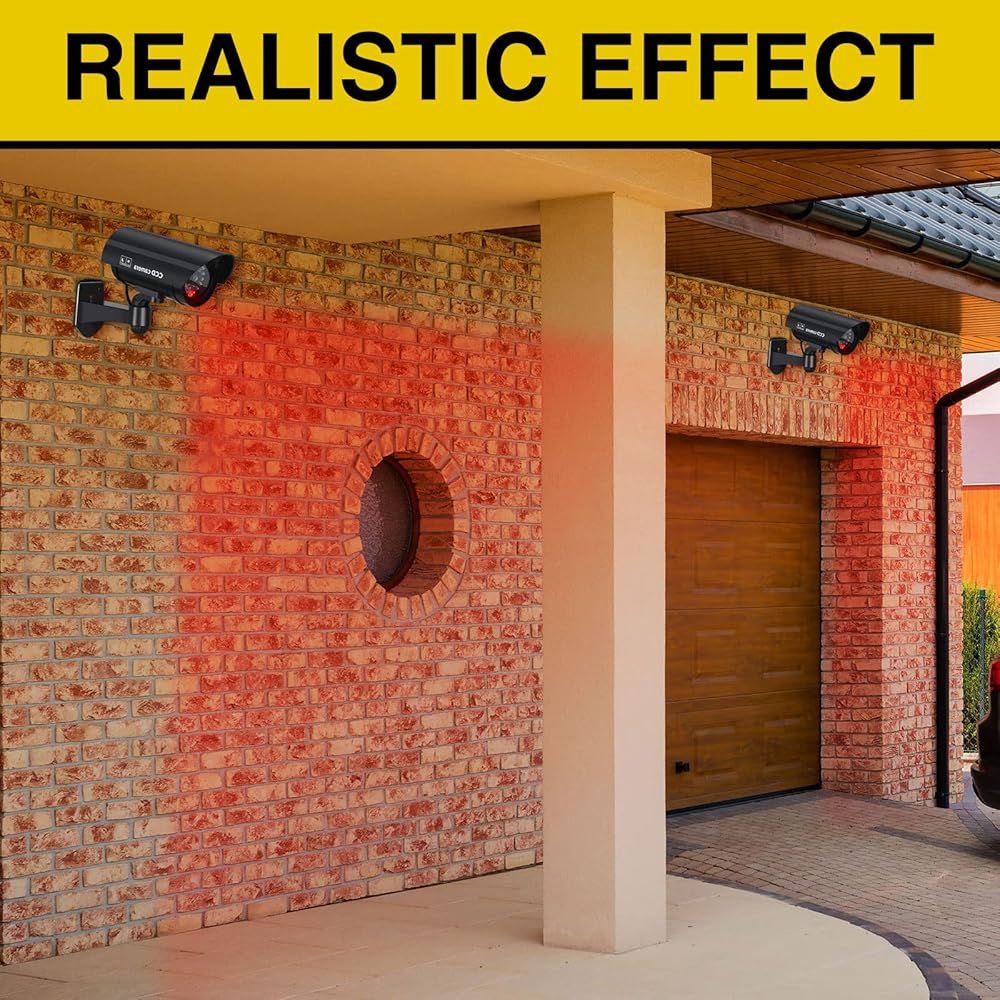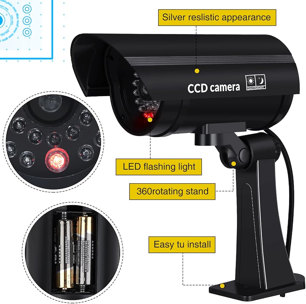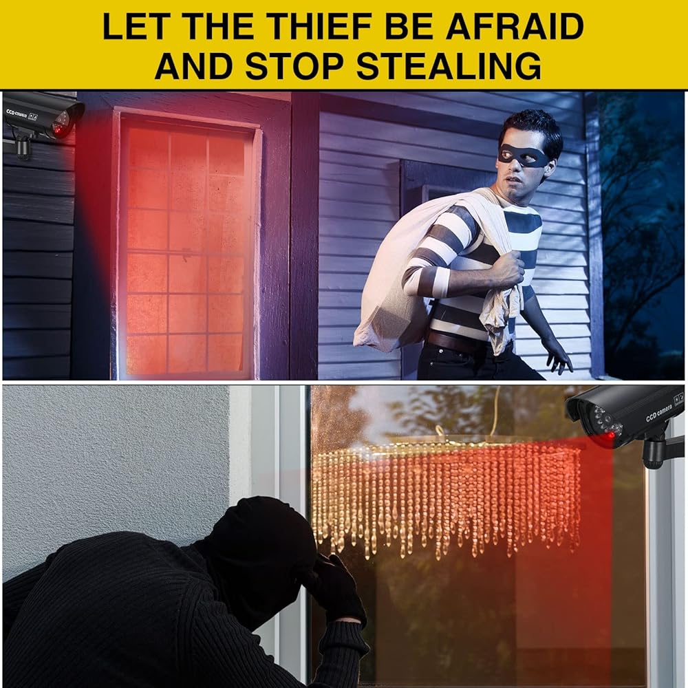 Waterproof and Durable: this fake security camera is made of quality plastic material, which is sturdy and strong, available for long time use, besides, this fake camera with light is rainproof and works well even in bad weather such as rainy days; Please do not immerse it in water
