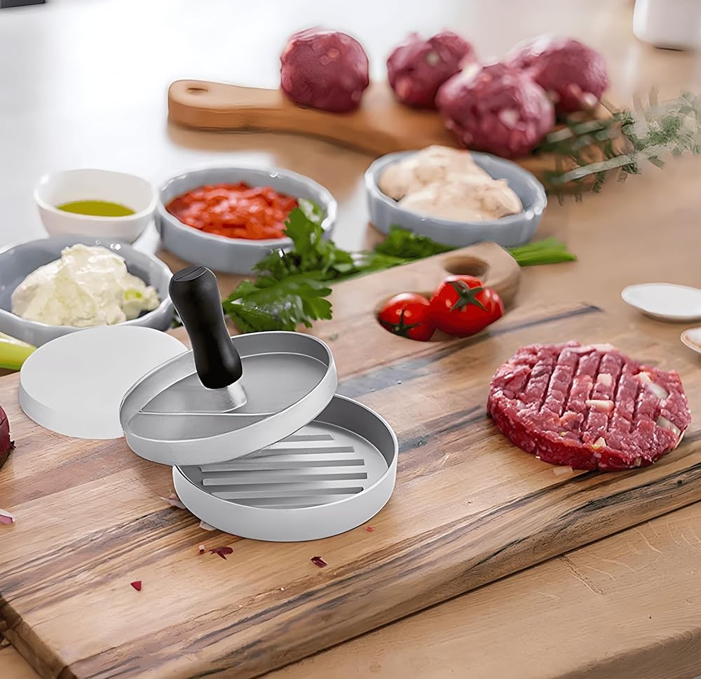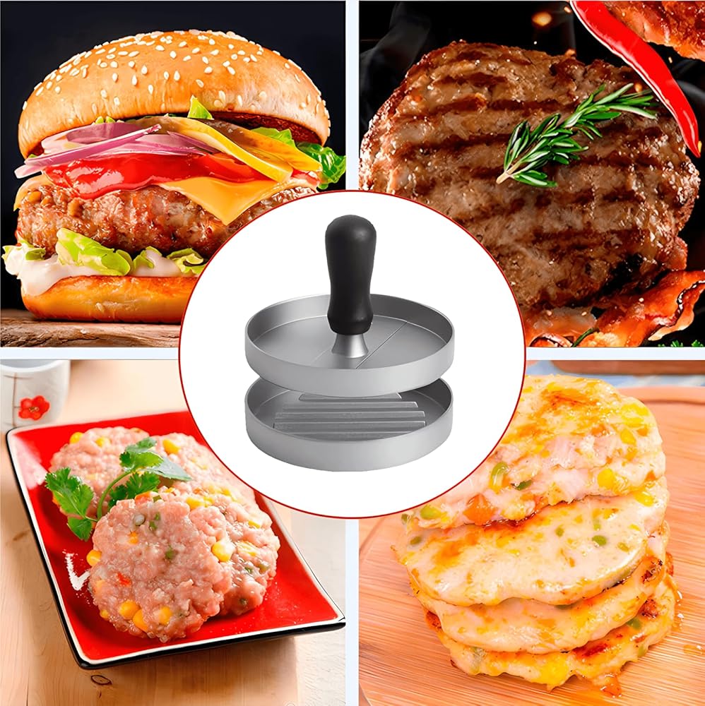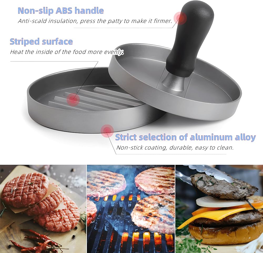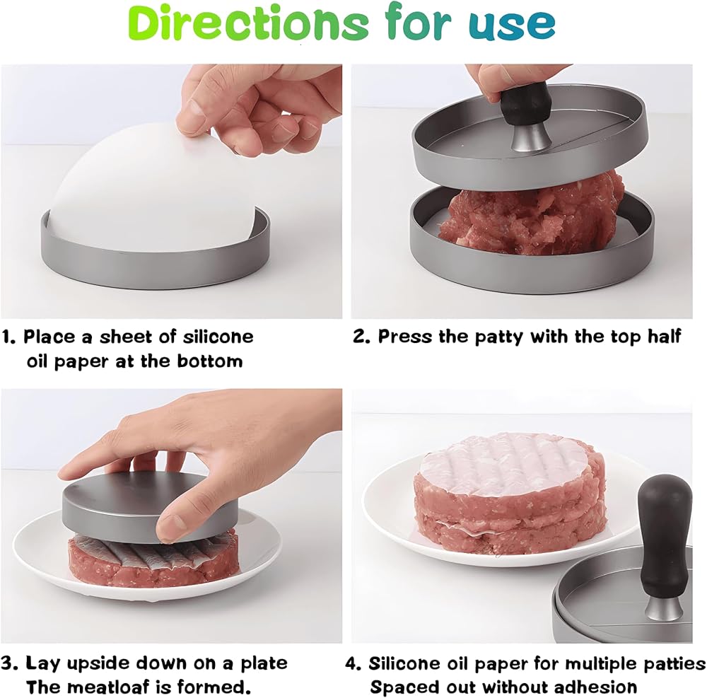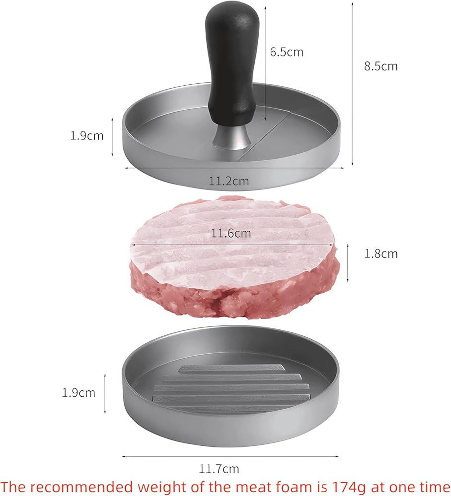 【سهلة الاستخدام والتنظيف】: فقط ضع اللحم المفروم في عصارة الهامبرغر، ثم قم بتشكيله بالسمك والحجم المرغوب فيه، وستكون جاهزًا للطهي. من السهل تنظيف هذه المكبس بالماء الدافئ والصابون، مما يجعلها إضافة مناسبة لأي مطبخ.