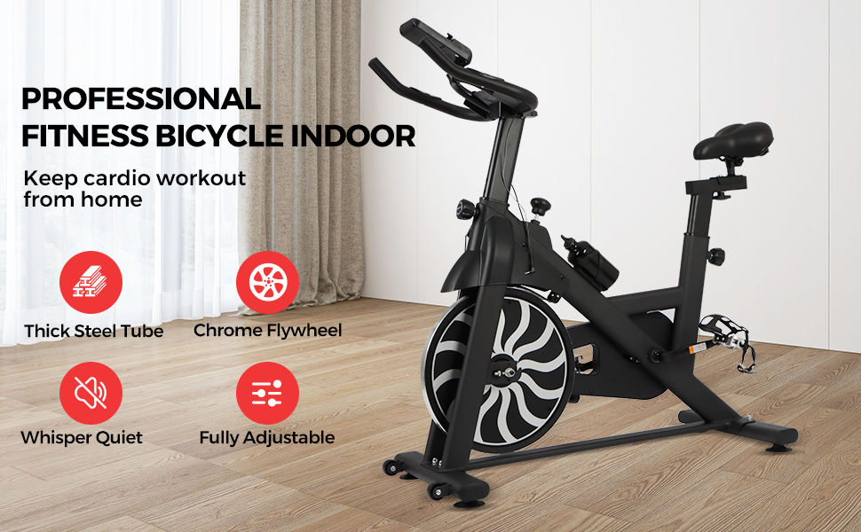 【 البناء الصلب 】 دراجة التمرين الثابتة مبنية على إطار فولاذي عالي التحمل وتصميمات في هيكل مثلث متعدد توفر ثباتًا رائعًا. ويصل وزنها إلى 300 رطل، وهي آلة ركوب الدراجات الداخلية المثالية للاستخدام في المكتب المنزلي.