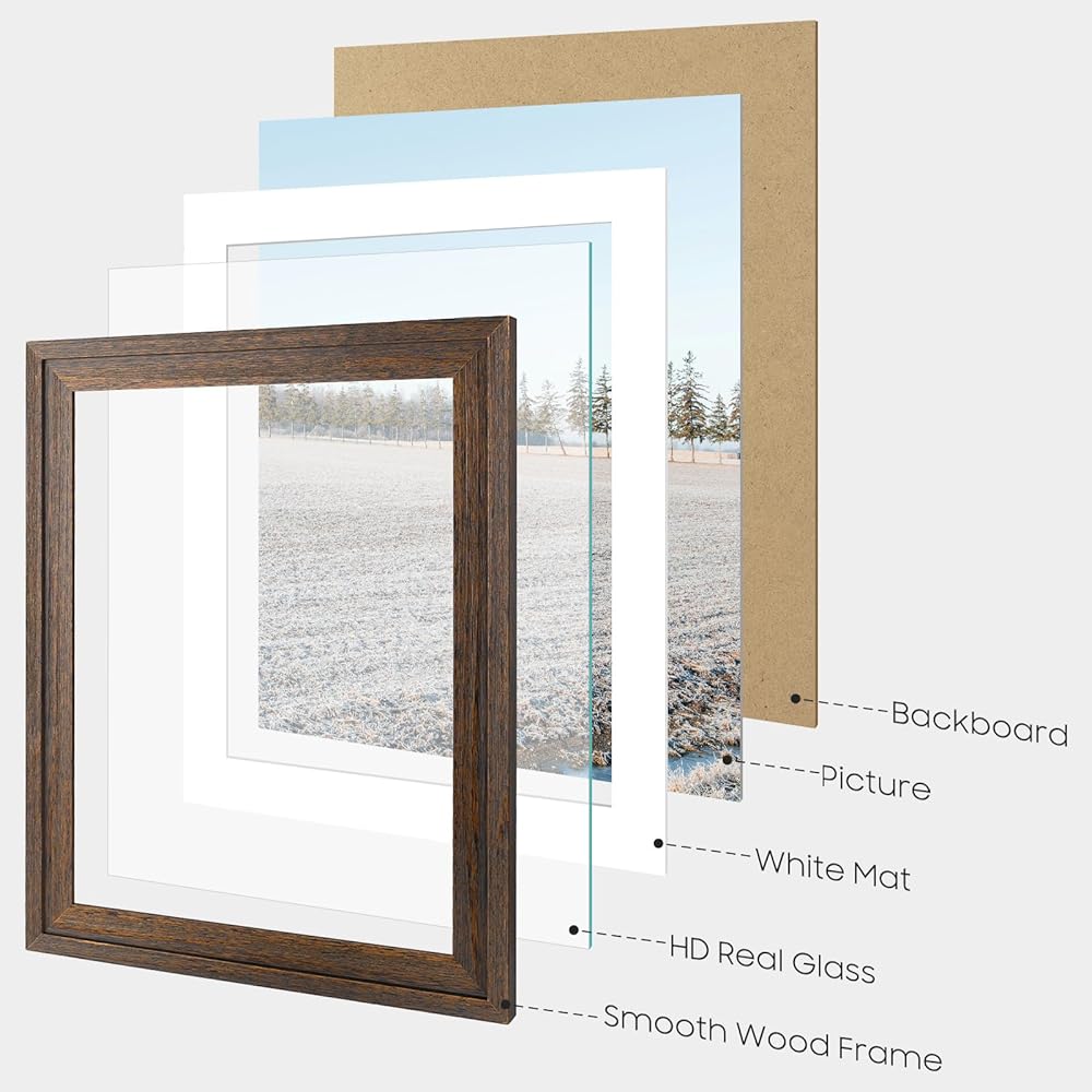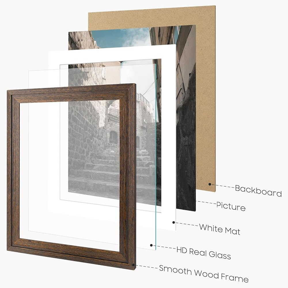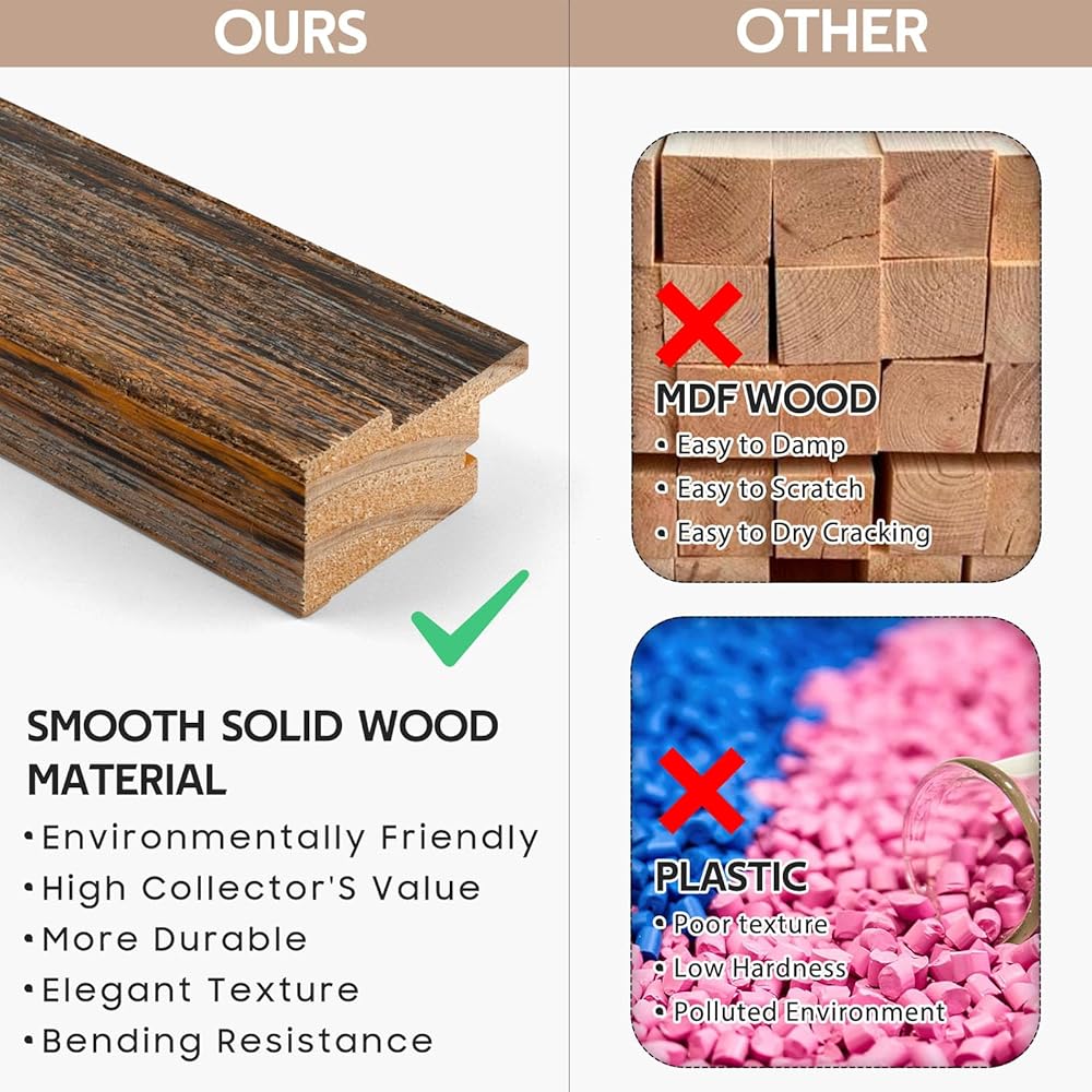 مادة عالية الجودة - مصنوعة من مادة الخشب الصلب لضمان الهيكل القوي، وتأتي مع غطاء زجاجي حقيقي يعطي رؤية واضحة لصورك ويحافظ على صورتك وأعمالك الفنية وبطاقاتك وذكرياتك.