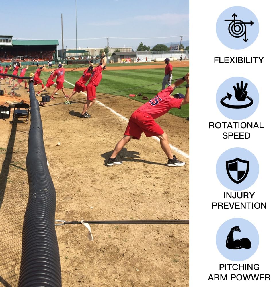 • ⚾[منع الإصابات] استخدمي رباط تدريب البيسبول الخاص بنا لمدة 5-10 دقائق قبل المباراة لتدفئة وتقوية العضلات. تعمل أنشطة الإحماء المناسبة على تمديد عضلات الذراع والكتف والظهر والبطن، مما يقلل بشكل كبير من خطر الإصابة أثناء ممارسة الرياضة.