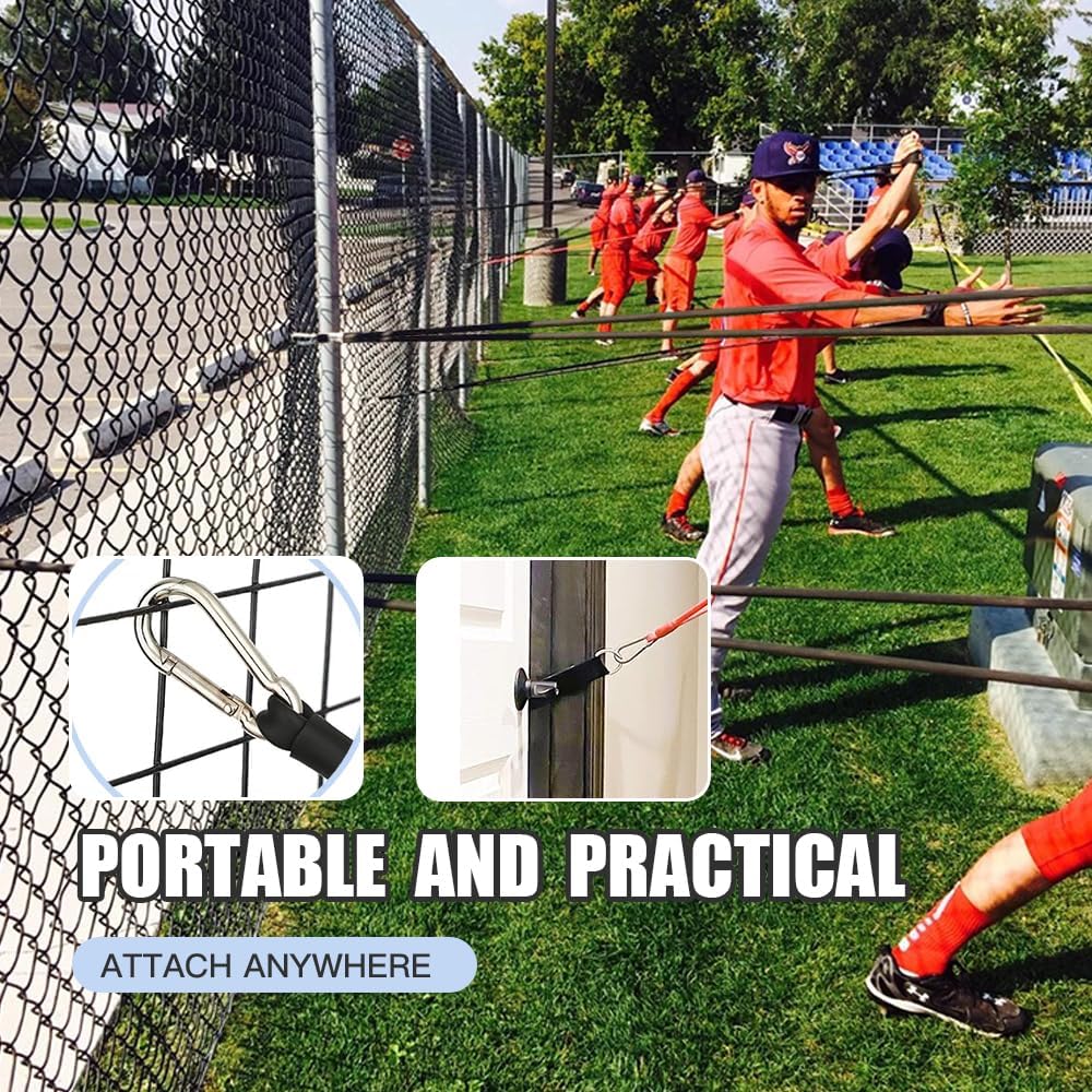 • ⚾【الاستخدام في أي مكان】تأتي عصابات البيسبول مع العديد من الخيارات من حيث المكان الذي يمكنك استخدامها فيه. إذا كنت بالخارج في الملعب، يمكنك تثبيتها بأمان باستخدام مشبك حلقة التثبيت المصنوع من الفولاذ المقاوم للصدأ على السياج. يمكنك أيضًا استخدام عمود أو أي شيء ثابت آخر مع حزام التكيف. وأخيرًا، يمكنك حتى استخدام السوار في منزلك. مع ملحق مرساة الباب المتضمن، يمكنك التدريب طوال العام.