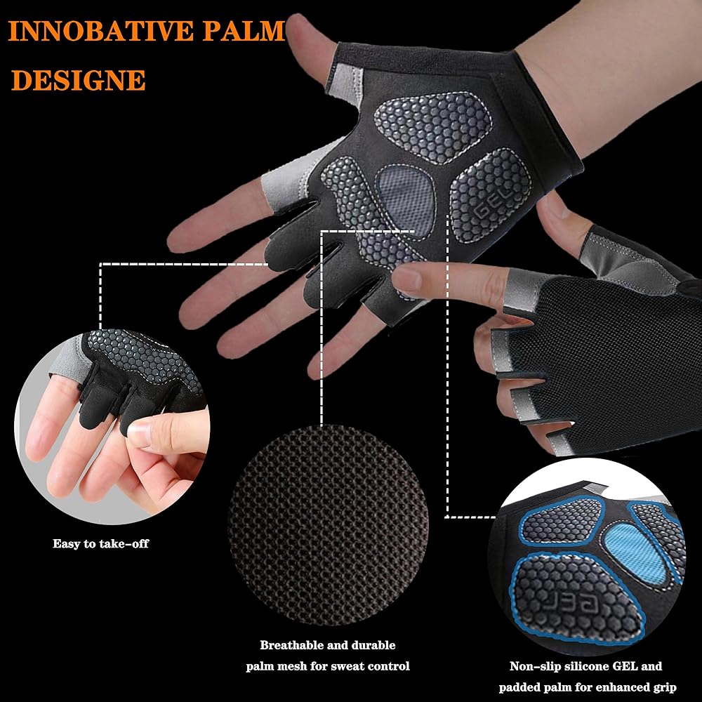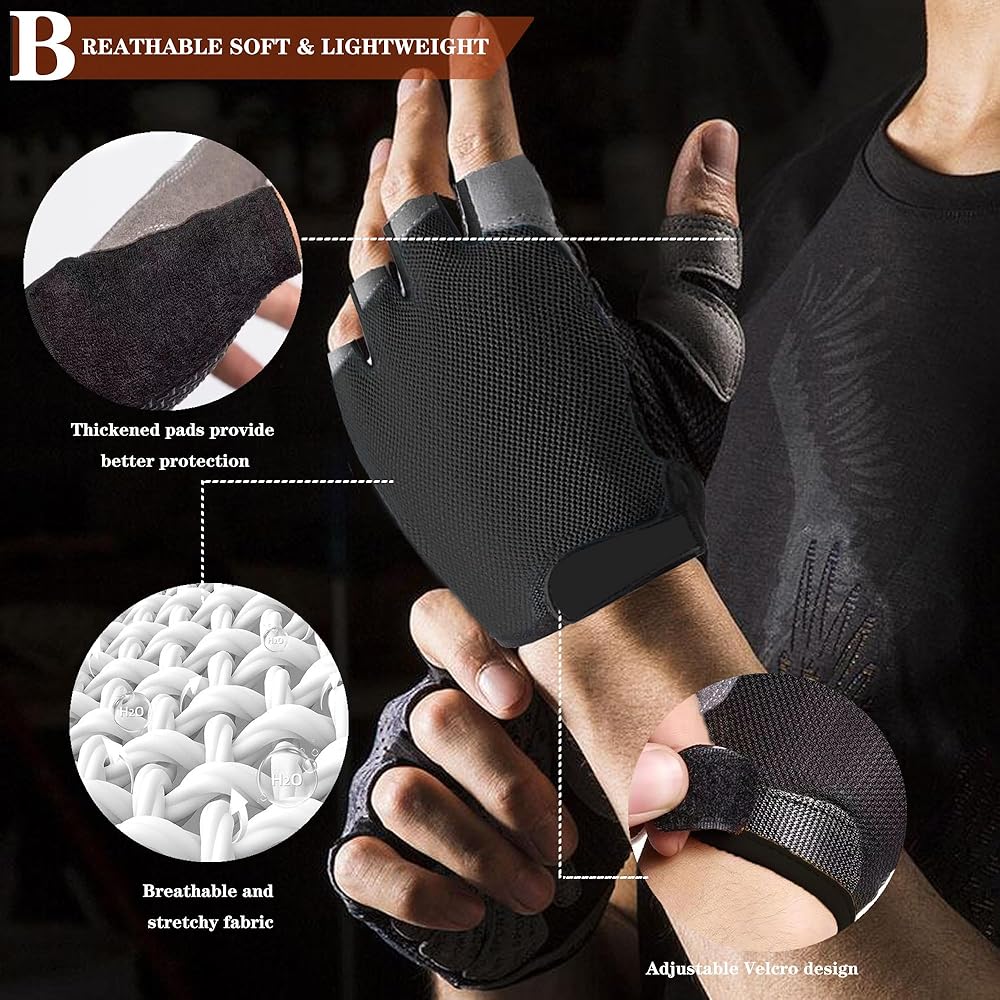 💪[Comfortable & Breathable for Enjoying Workout] The back of the sports gloves has a moisture-wicking, quick-drying breathable mesh design. It is made of lightweight, breathable, skin-friendly and elastic fabric, providing you with amazing comfort and flexibility. It also allows your hands to breathe during strenuous workout, reducing hand sweat and keeping them dry and comfortable, and the fitness gloves won't stink. There is no burden on your hands, so you can focus on training at any time!