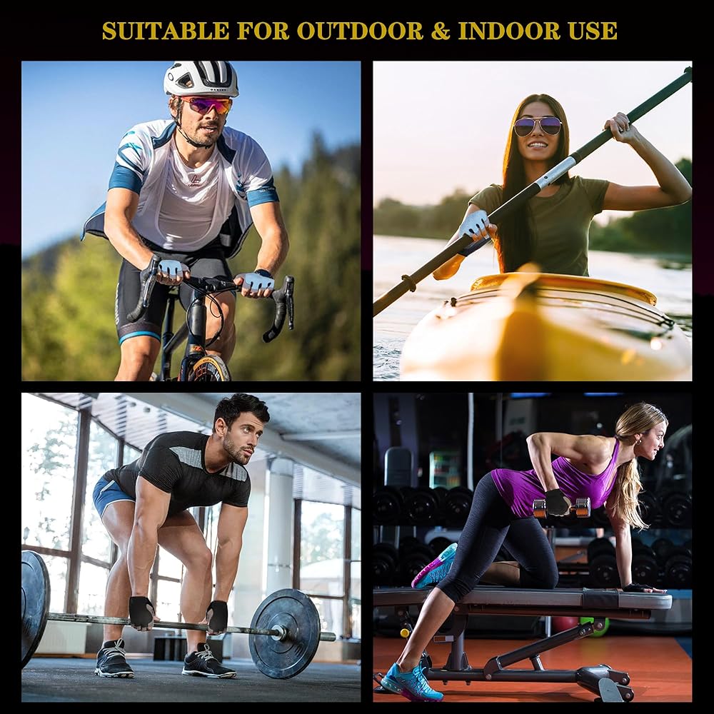 💪[Anti-Slip, Wear-Resistant & Durable] The honeycomb-structured silicone GEL anti-slip design on the palm of the workout gloves for women and men can increase friction and stability to reduce sliding and keep the apparatus in place. The gloves are made of premium wear-resistant microfiber with strong stitching, lightweight and durable. Can be used as weightlifting gloves, gym gloves, fitness gloves, training gloves grips, exercise gloves, biking gloves, rowing gloves, kayak gloves.