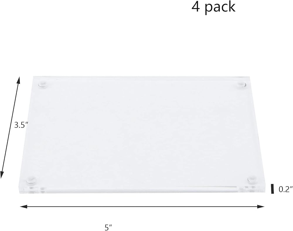 • The package contained: 4 pieces clear acrylic picture frames in 128mm/5inch lenght and 89mm/3.5inch width, and 6mm/0.24inch total thickness.