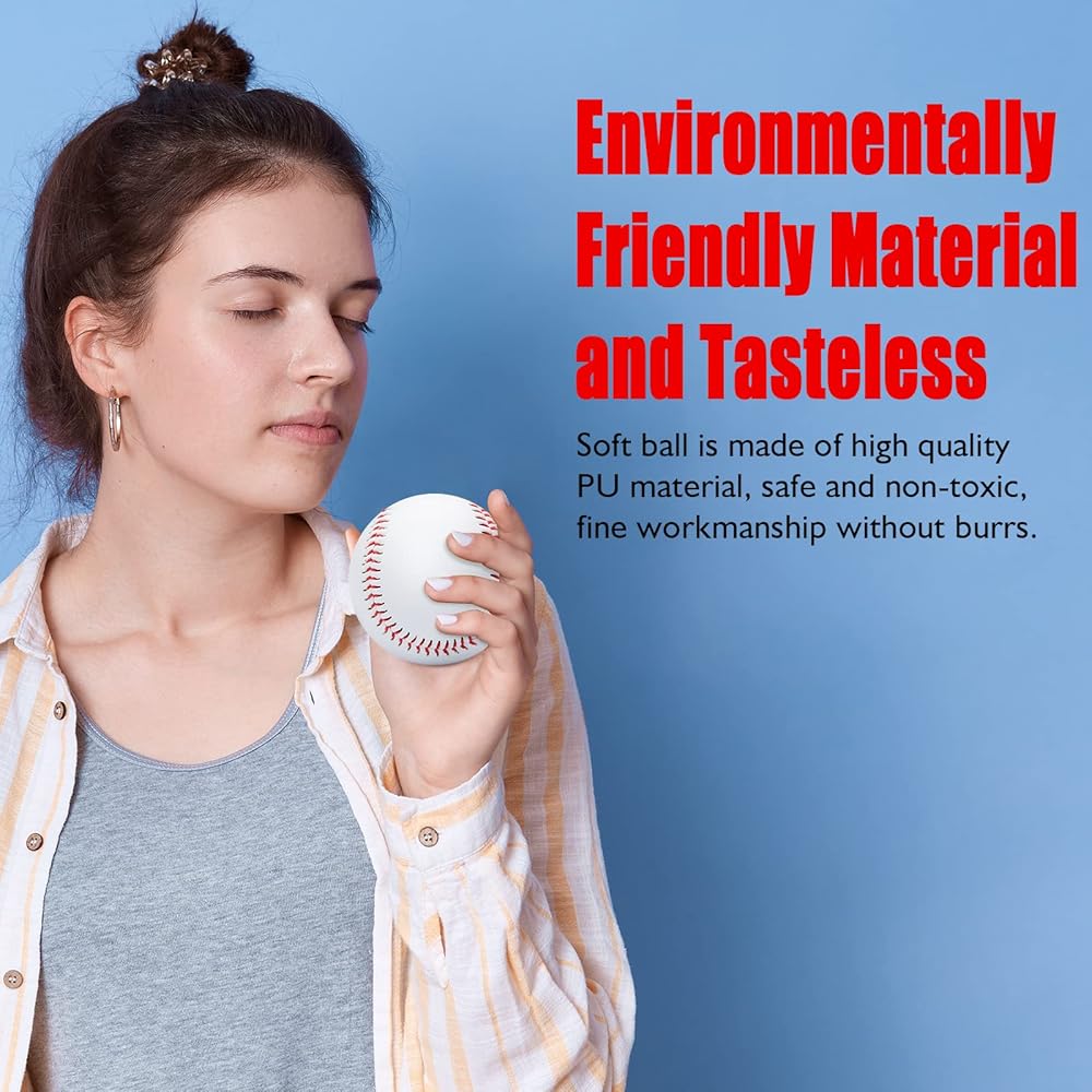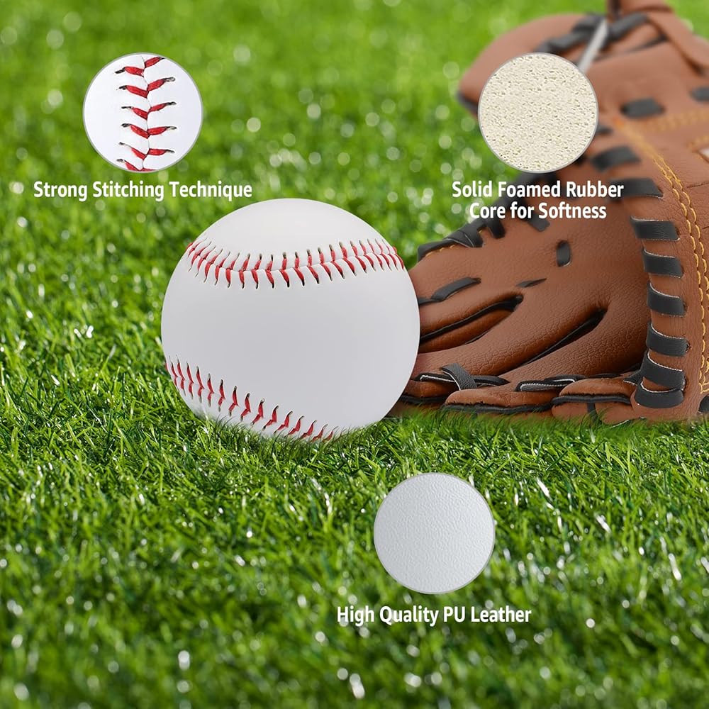 ⚾ كرات البيسبول الآمنة: سطح كرات البيسبول الخاصة بنا مصنوع من جلد البولي يوريثان الصديق للبيئة، والجزء الداخلي مملوء بالمطاط الرغوي الصلب. ناعم جدًا ومرن. مثالية للأطفال / الشباب المبتدئين الذين يتعلمون الإمساك والرمي والضرب. ثقة ملموسة عن طريق الحد من الخوف من التأثير.