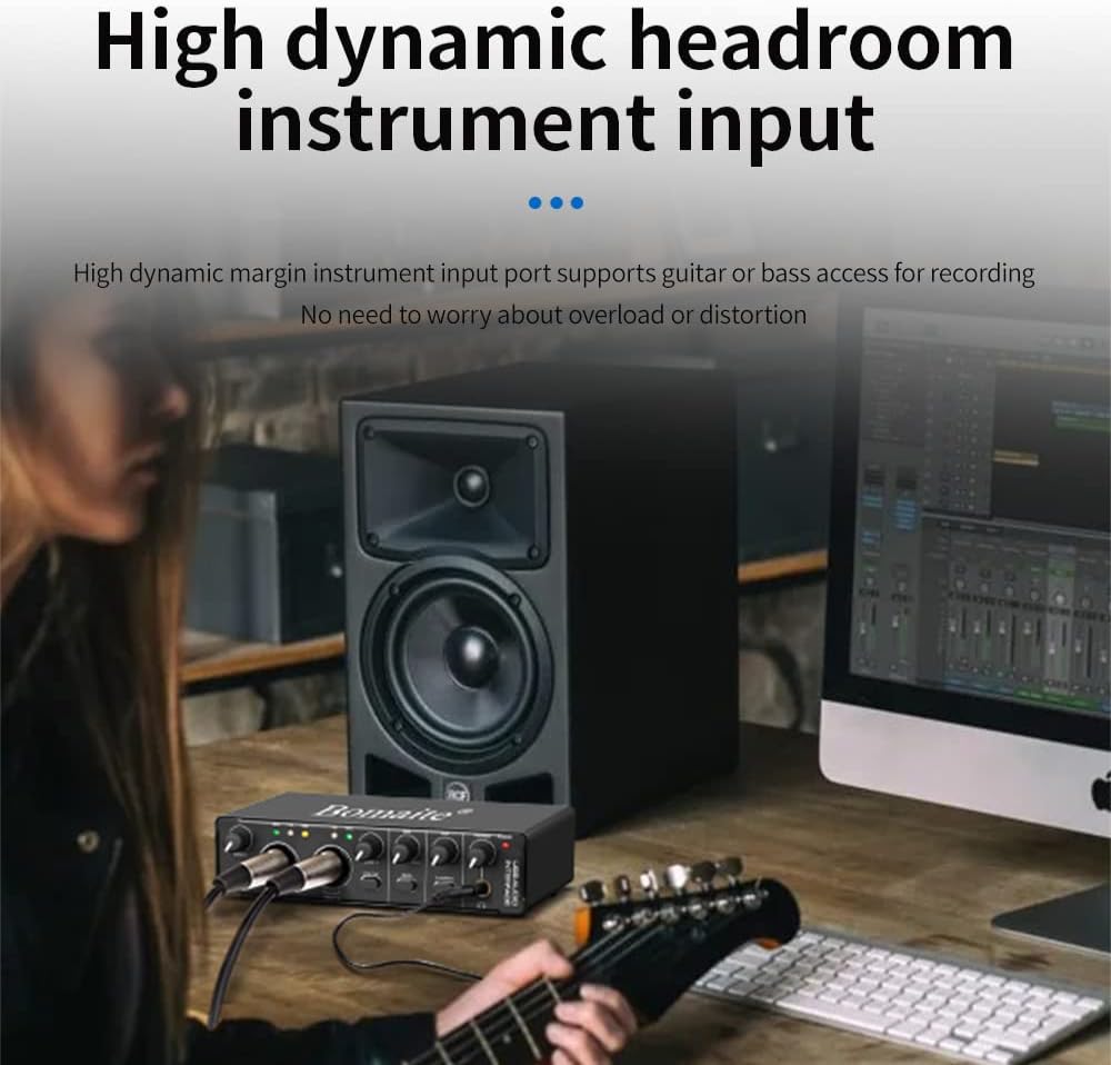 • واجهة صوت MD22 بجودة صوت احترافية، مع جميع واجهات التوصيل للميكروفون، والجيتار الكهربائي، والباس، وما إلى ذلك، بما في ذلك ميكروفون مكثف +48 فولت، تحتوي واجهة الصوت MD22 على محول عالي الجودة 24 بت/192 كيلو هرتز للتسجيل الأصلي، بدقة التقاط التقاط المعلومات التفصيلية لكل إشارة تسجيل لضمان حفظ الصوت أثناء التسجيل بأكمله.