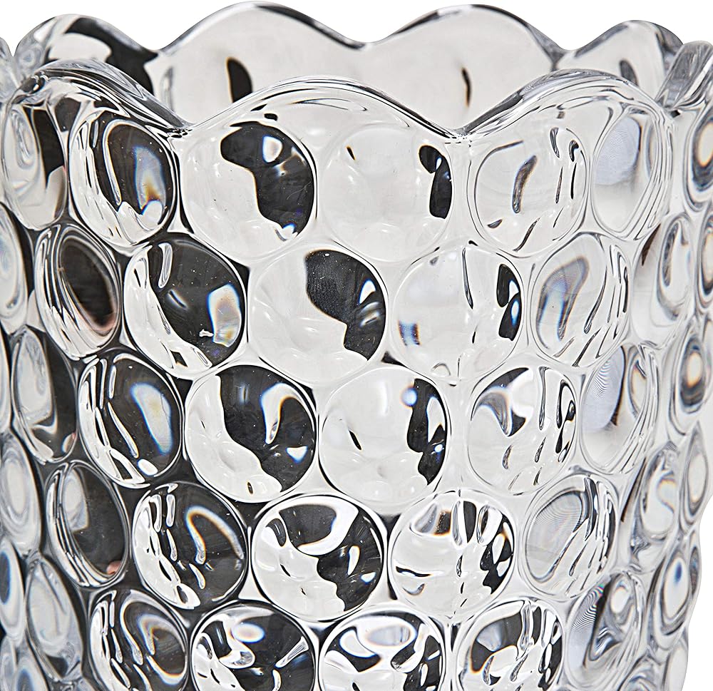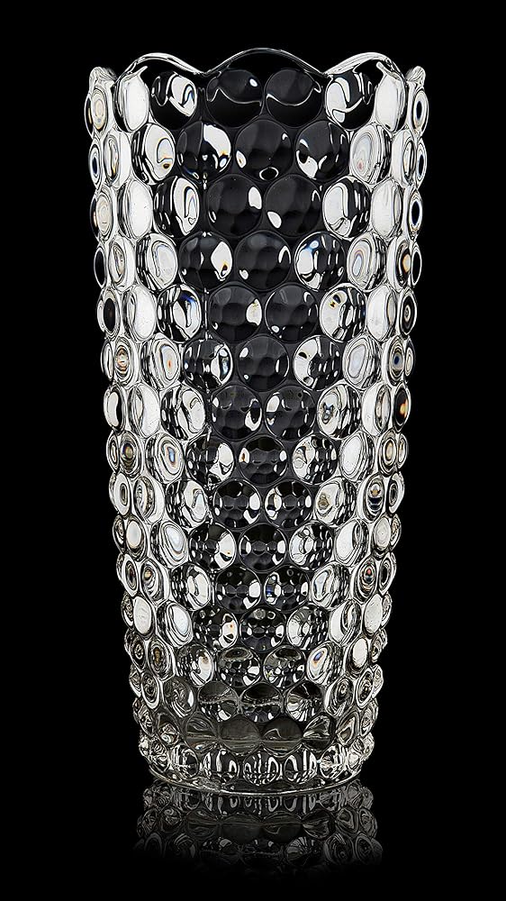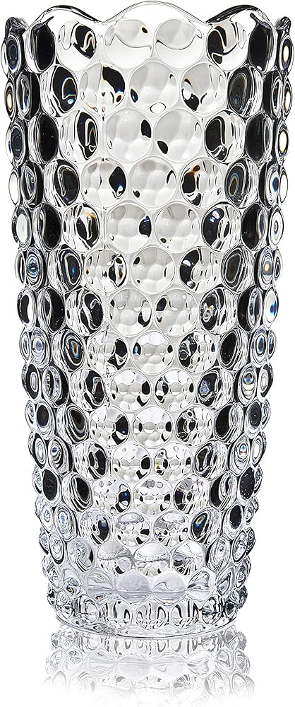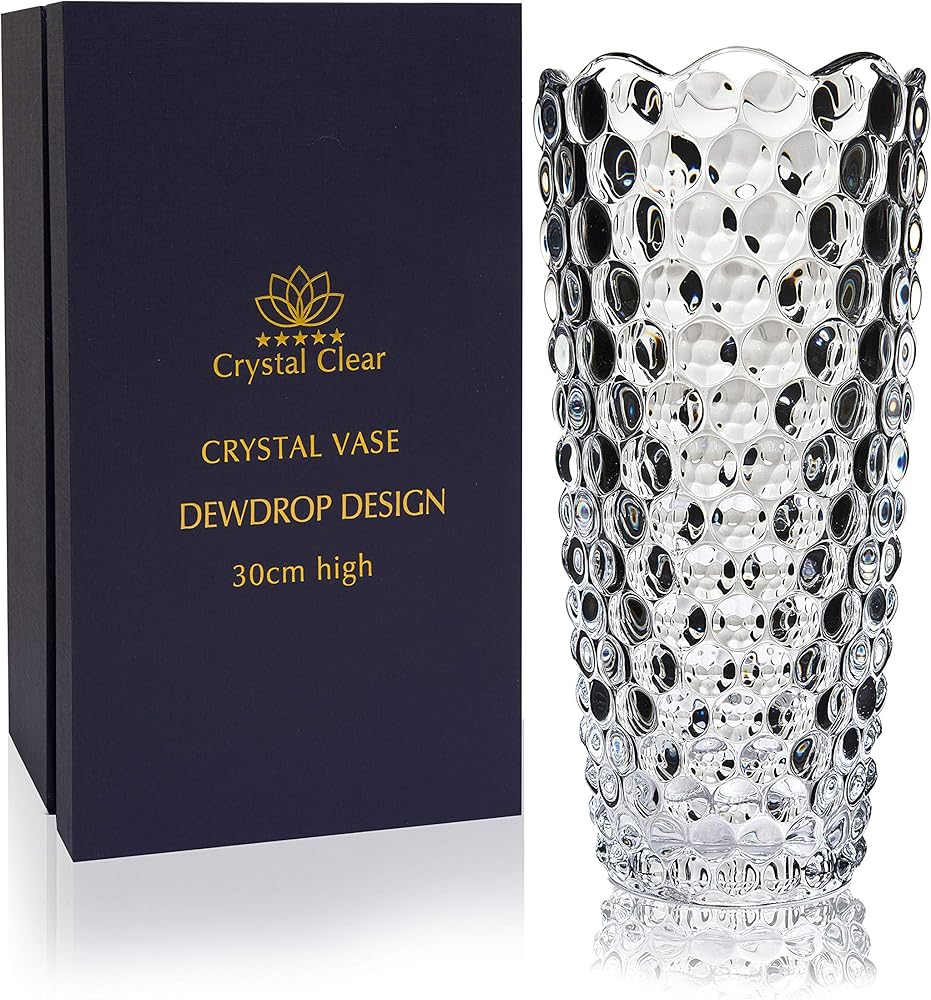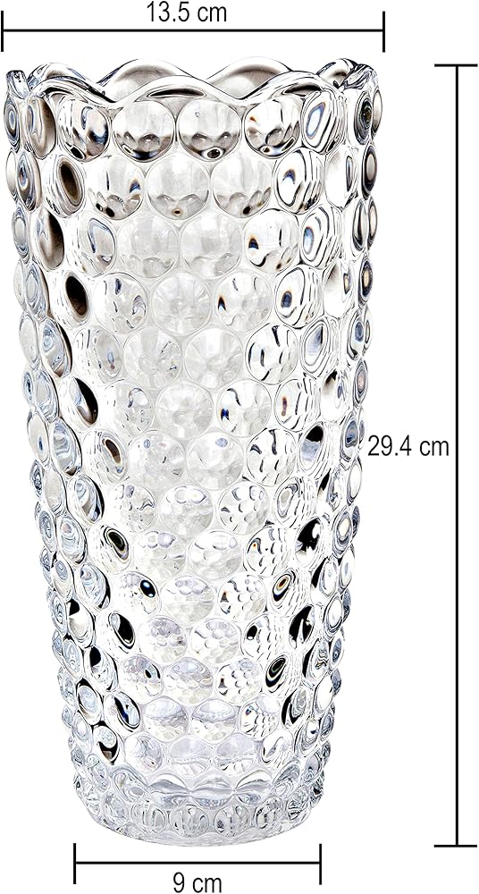 Design and Shape: This 12" tall vase an elegant design. Engraved with gorgeous and brilliant Dewdrop design; truly celebrating commitment and everlasting love. Crystal glass production, the vase is more glaring than general vase, particularly in reflecting light, the vase will be very bright. No sharp corners, bubbles and wrinkles on the glass, safe and beautiful. Easy to wash and shock resistant.