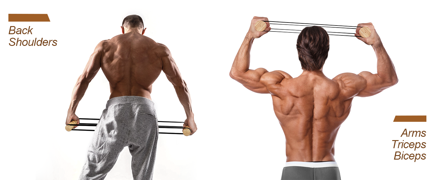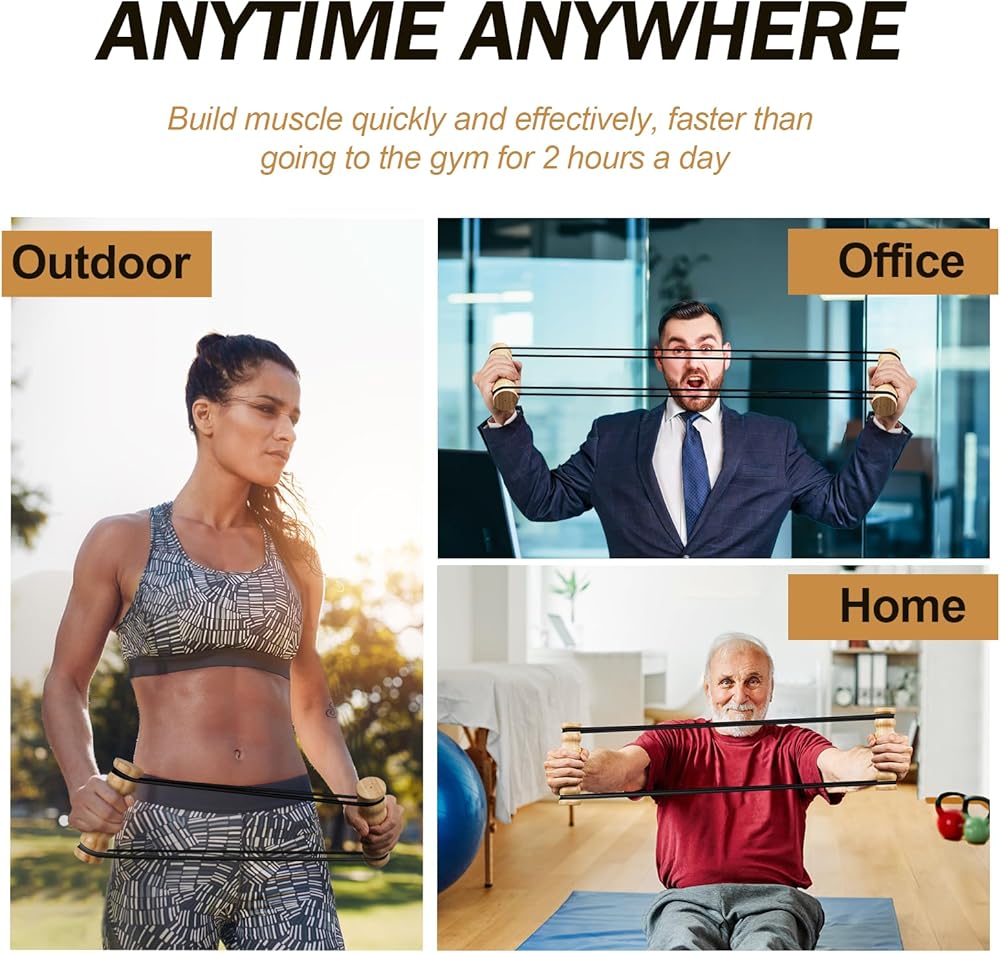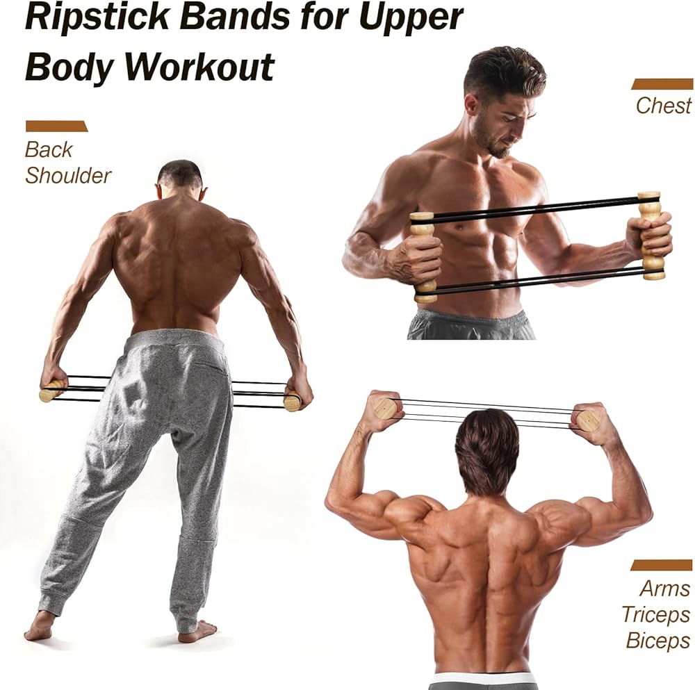 تمرين ريب ستيك - تدريب المقاومة والقوة، جهاز ريب ستيك لتمرين الجزء العلوي من الجسم، صالة الألعاب الرياضية المنزلية، أشرطة مقاومة قابلة للتعديل بمقابض خشبية، معدات تمارين محمولة، صديقة للمفاصل